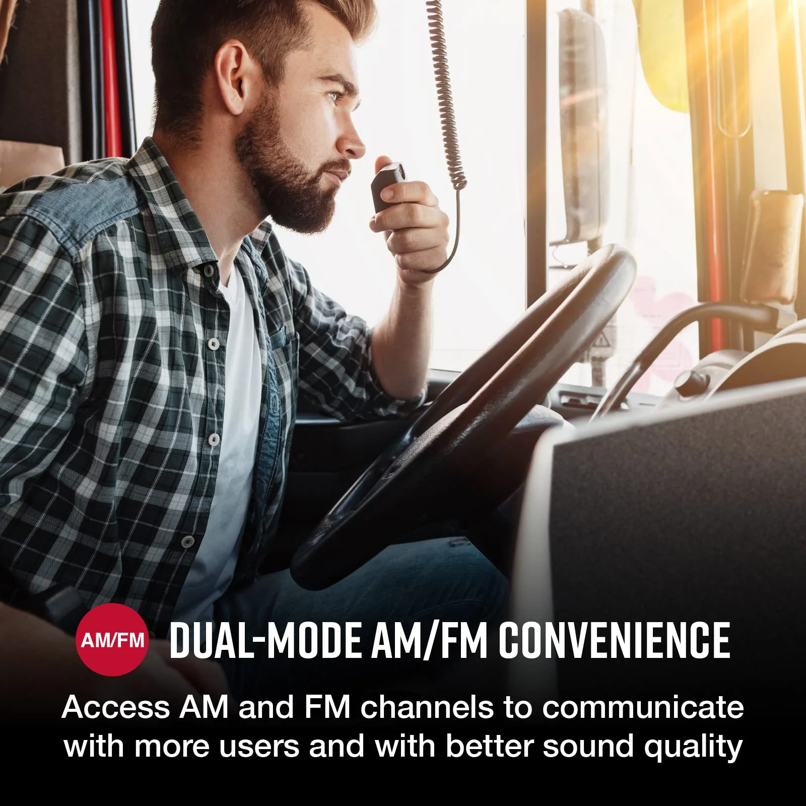 - Dual-Mode AM/FM – Efficient communication while on the road just got easier. This CB radio provides access to both AM and FM channels, allowing communication with more users, long range or near, and with better sound quality.