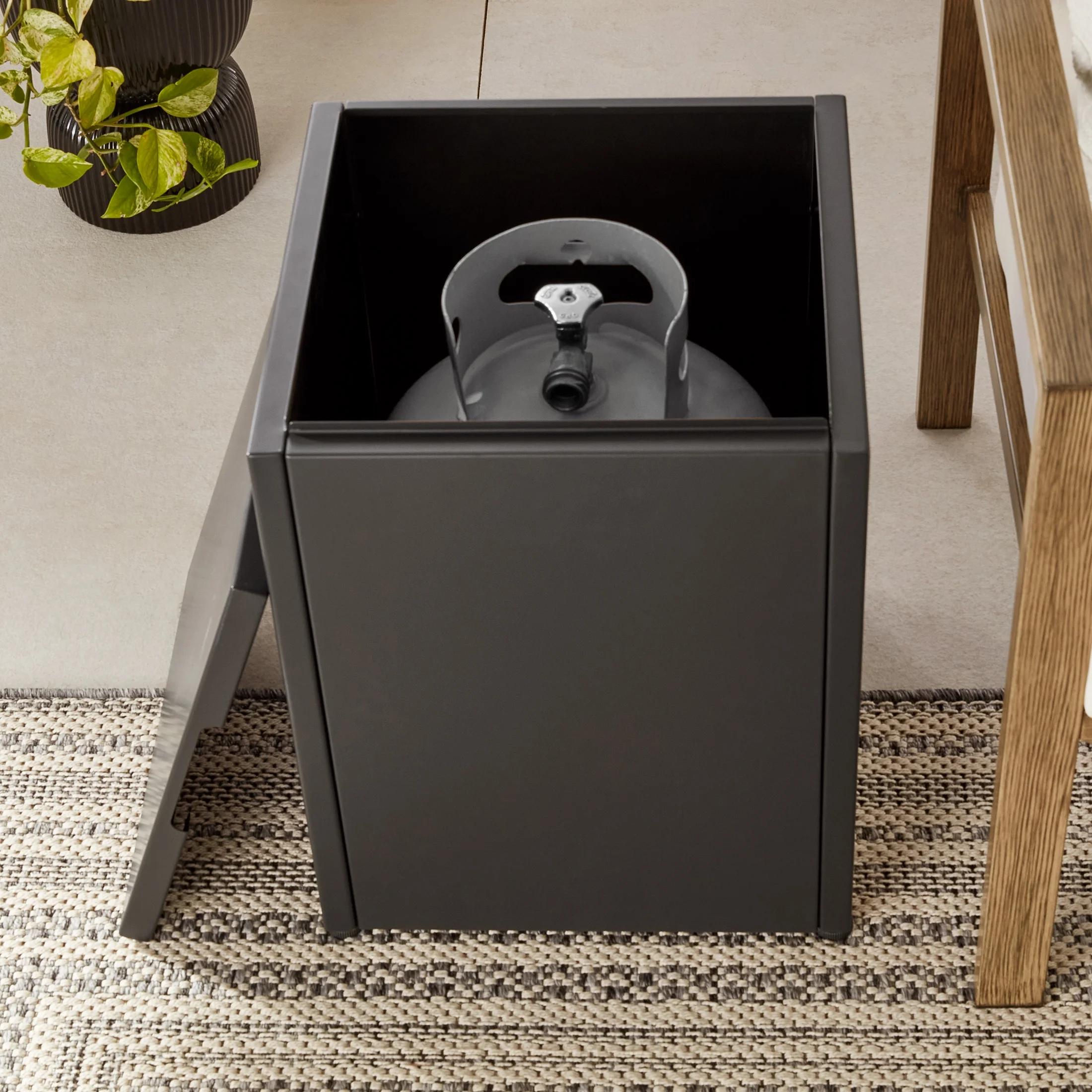 Experience relaxing evenings with memorable conversations and fun activities around a warm fire with the Mainstays Modern 42" x 20" Rectangular 50,000 BTU Propane Matte Black Steel Fire Pit Table with Tank Hideaway and Cover. The matte-black finish and modern design of this fire pit table make it a sophisticated centerpiece for any patio, terrace, or other outdoor area. Use it as a fire pit at parties to spark up some excitement or place the included lid on top to convert it into a coffee table for more intimate moments. It also includes a tank hideaway that fits a standard, 20-lb propane tank and doubles as a matching side table (tank sold separately), as well as a protective vinyl cover. The durable fire pit is constructed of steel and features an electronic ignition system, adjustable flame control, and a heat output of up to 50,000 BTUs. Enjoy a good book or pleasant conversation, or entertain with s��mores on cool nights next to the Mainstays Modern 42" x 20" Rectangular 50,000 BTU Propane Matte Black Steel Fire Pit Table, a stylish outdoor addition that provides warmth and ambience.