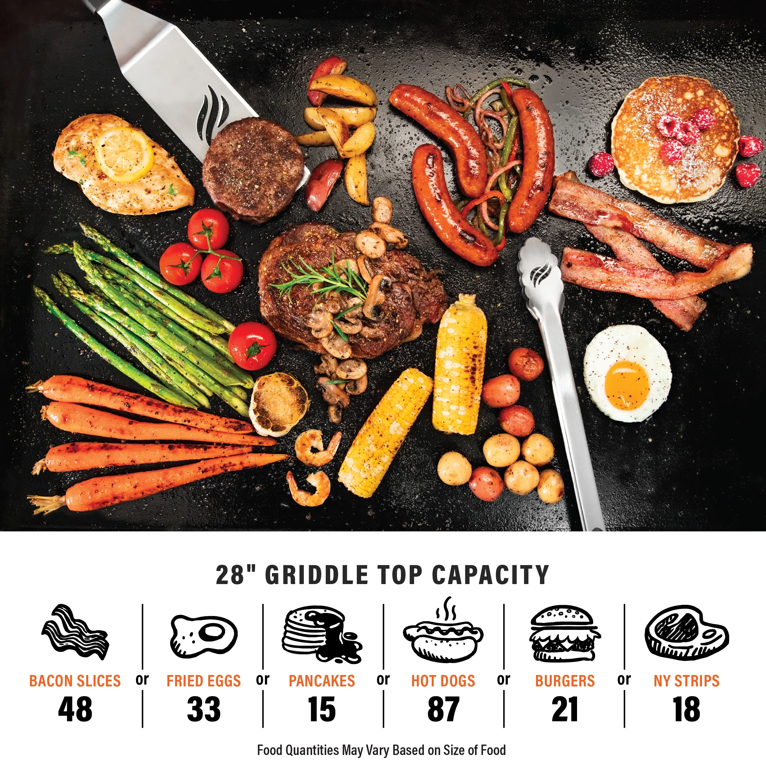 - Includes two fixed caster wheels to conveniently move the griddle to your ideal cooking location