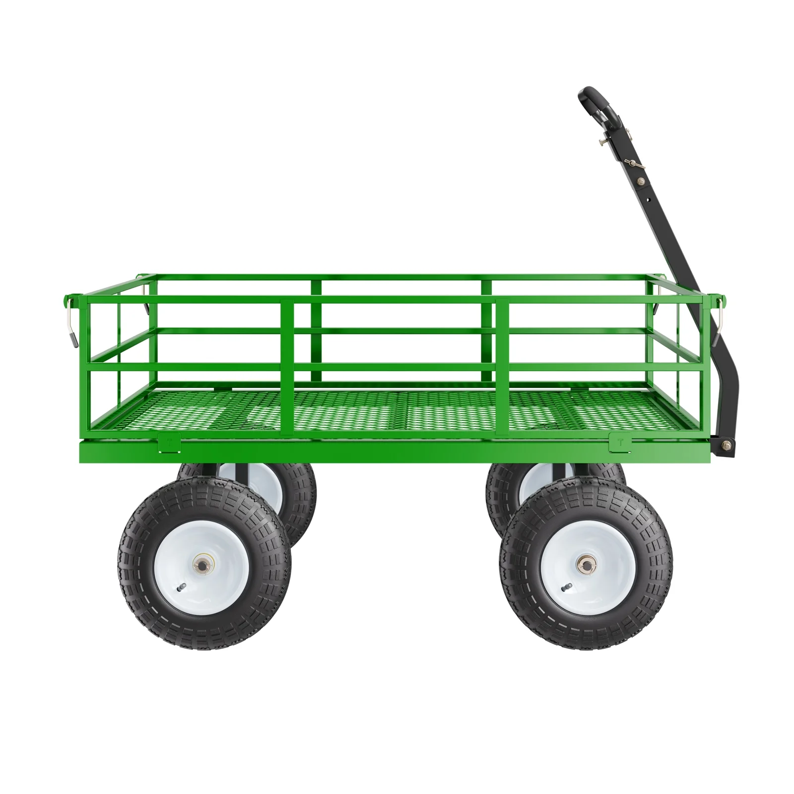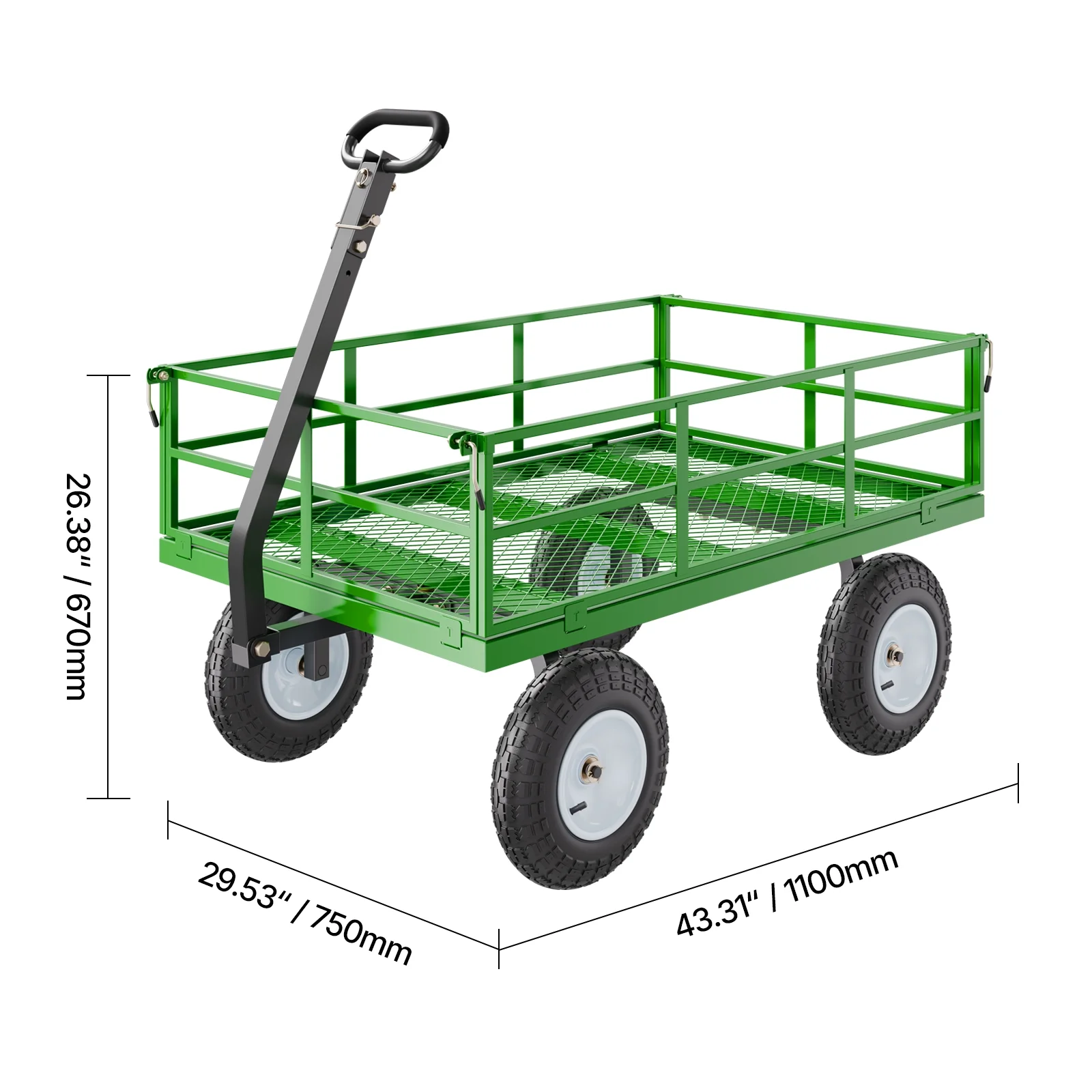 • KFFKFF Mesh Steel Garden Cart 1200 lb, 43.3 x 29.5 " Heavy Duty Utility Wagon Cart, Pullable Metal Garden Trolley with 13' All-Terrain Tires, Removable Mesh Sides, 180swiveling Handle (Green)
