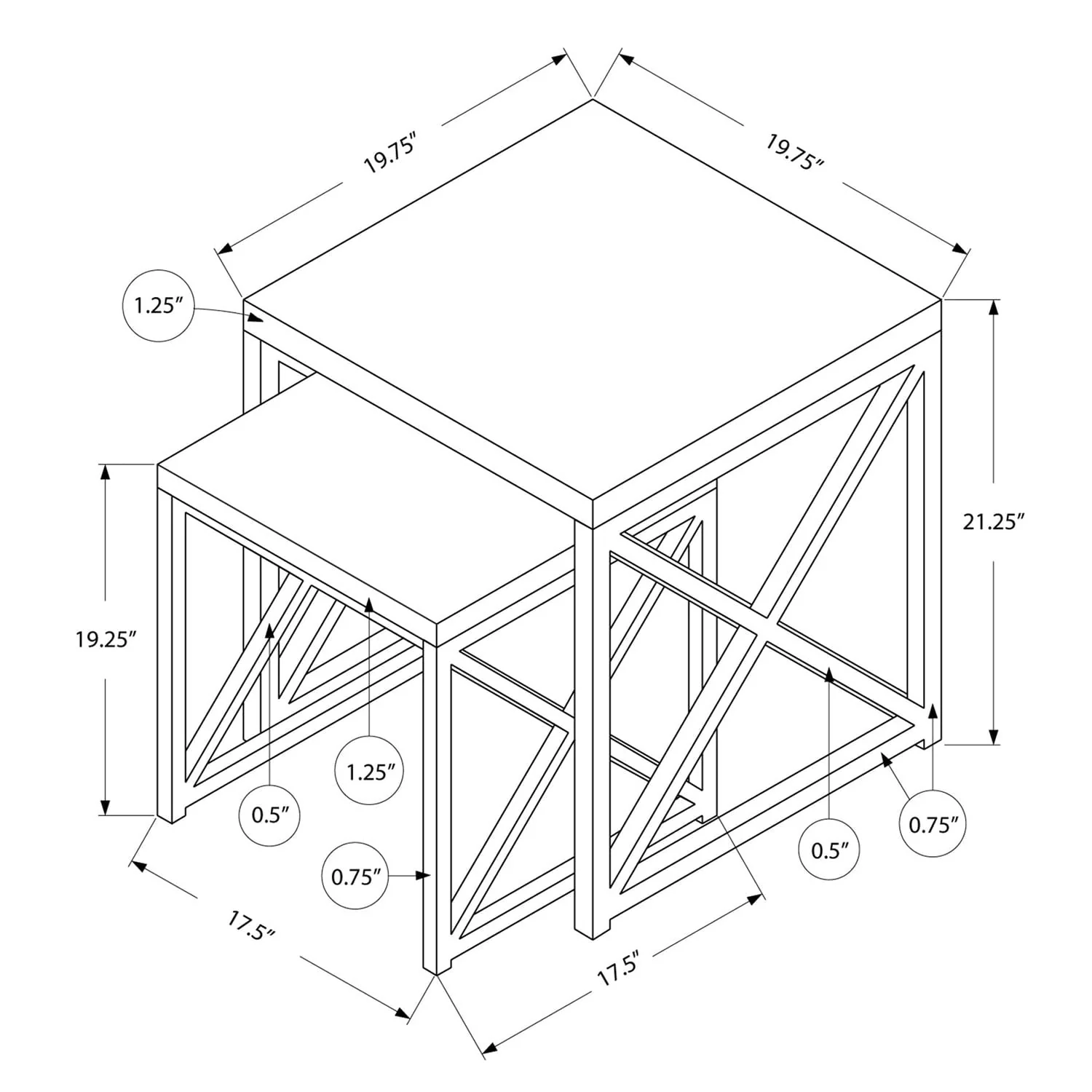 This set of 2 square end tables features a design that is robust and stylish. Both tabletops are 1.25-inches thick and are finished in a cherry laminate. Supporting the thick tabletops are sturdy metal bases in a contrasting black finish for an industrial farmhouse look. The sides of the base are accented with an X design that brings a decorative flair.