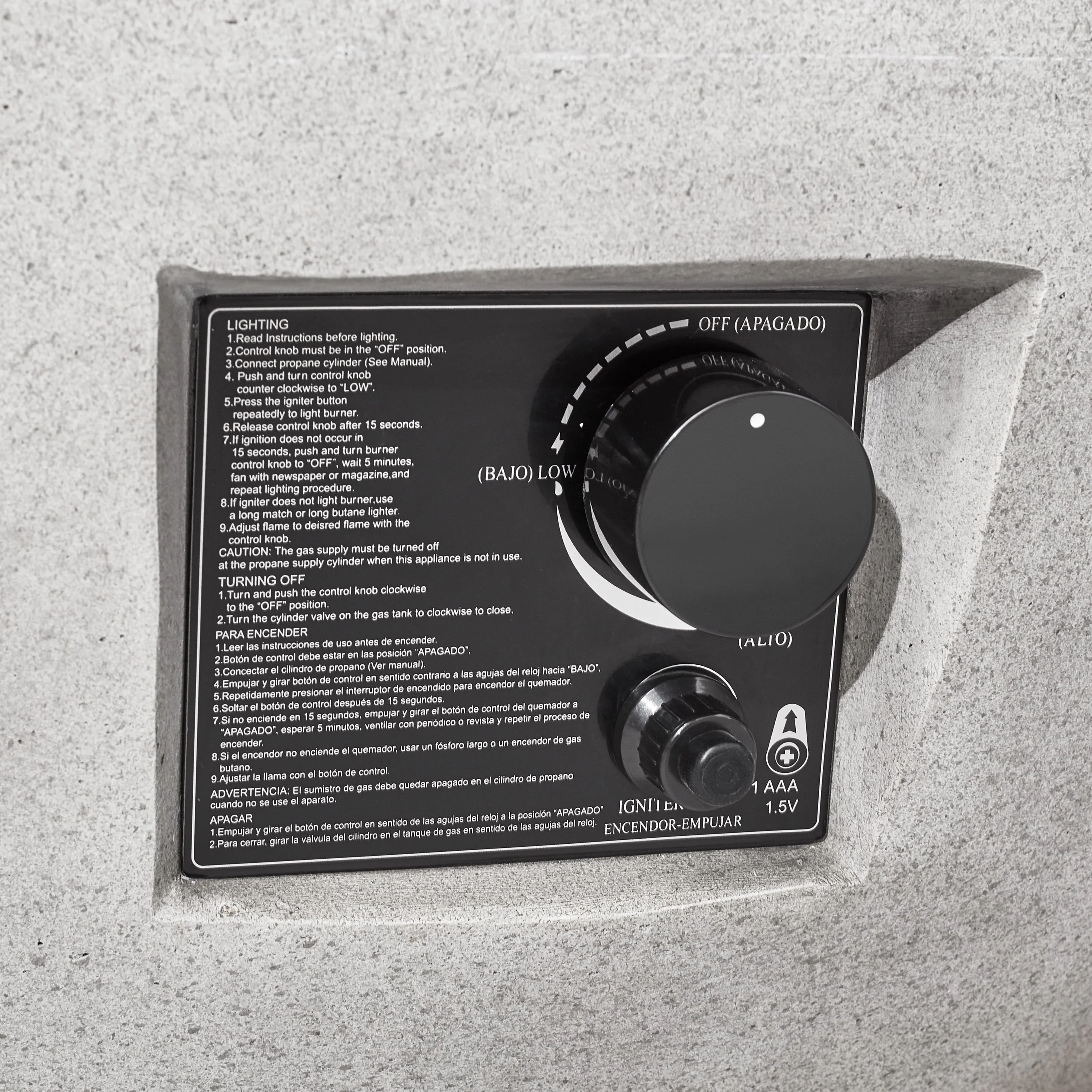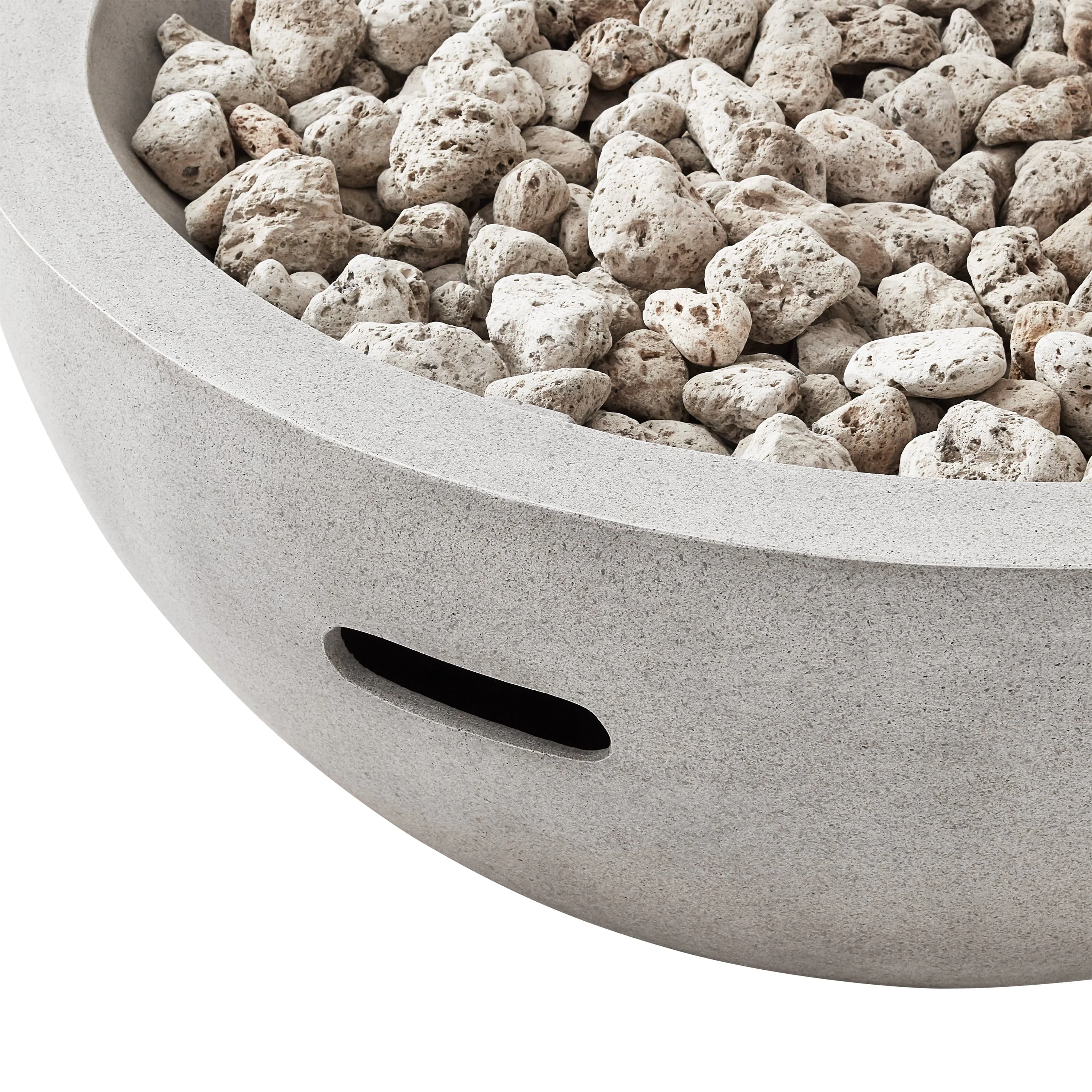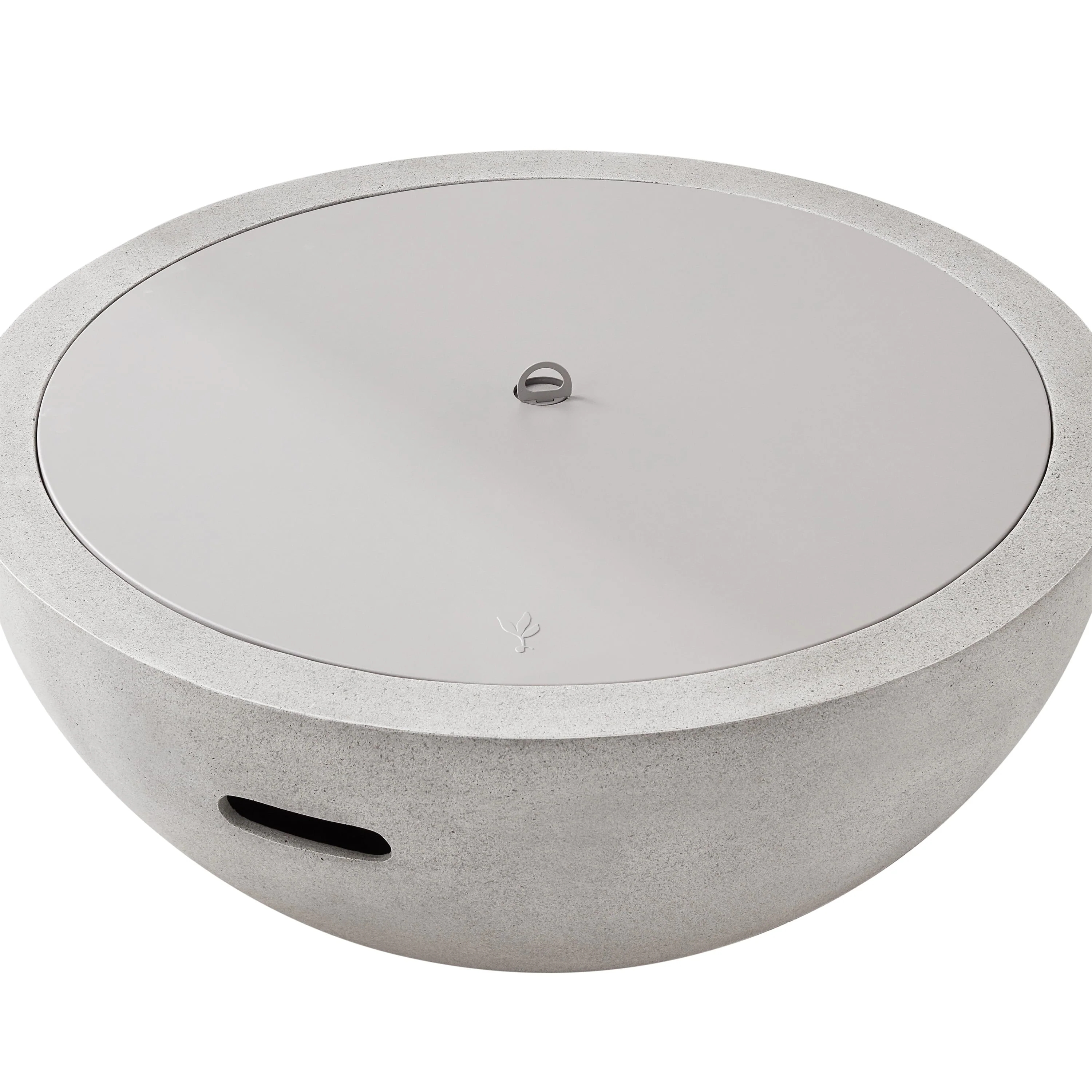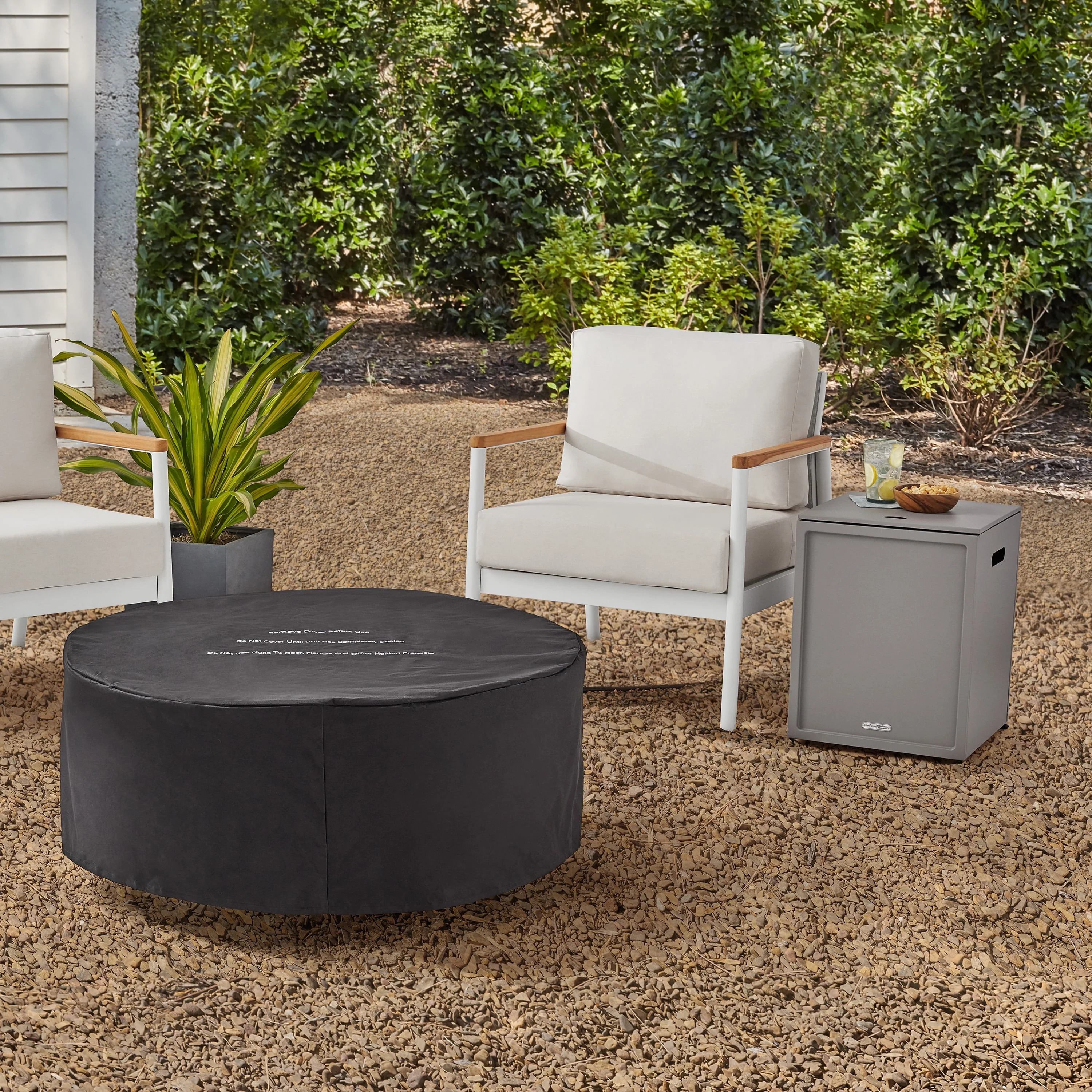 Turn your backyard into a cozy gathering spot with the Better Homes & Gardens 36" 65,000 BTU Propane Fire Pit with Tank Hideaway by Dave & Jenny Marrs. The round, faux stone fire pit has a smooth, Mason texture and is made from a combination of Envirostone® and stainless steel, making it durable enough for your outdoor space. The tank hideaway keeps the 20-pound propane tank out of sight and can be used as a table to rest a plate or cold beverage on. With the help of an instant electronic impulse ignition, it's easy to enjoy an evening with friends, watching the fire dance amidst the large pumice stones. This firepit also comes with a water-resistant, all-weather, polyurethane-coated fabric cover to help maintain its beauty and durability when not in use. Arrange an outdoor oasis in your own backyard with the Better Homes & Gardens 36" 65,000 BTU Propane Firebowl with Tank Hideaway by Dave & Jenny Marrs.
