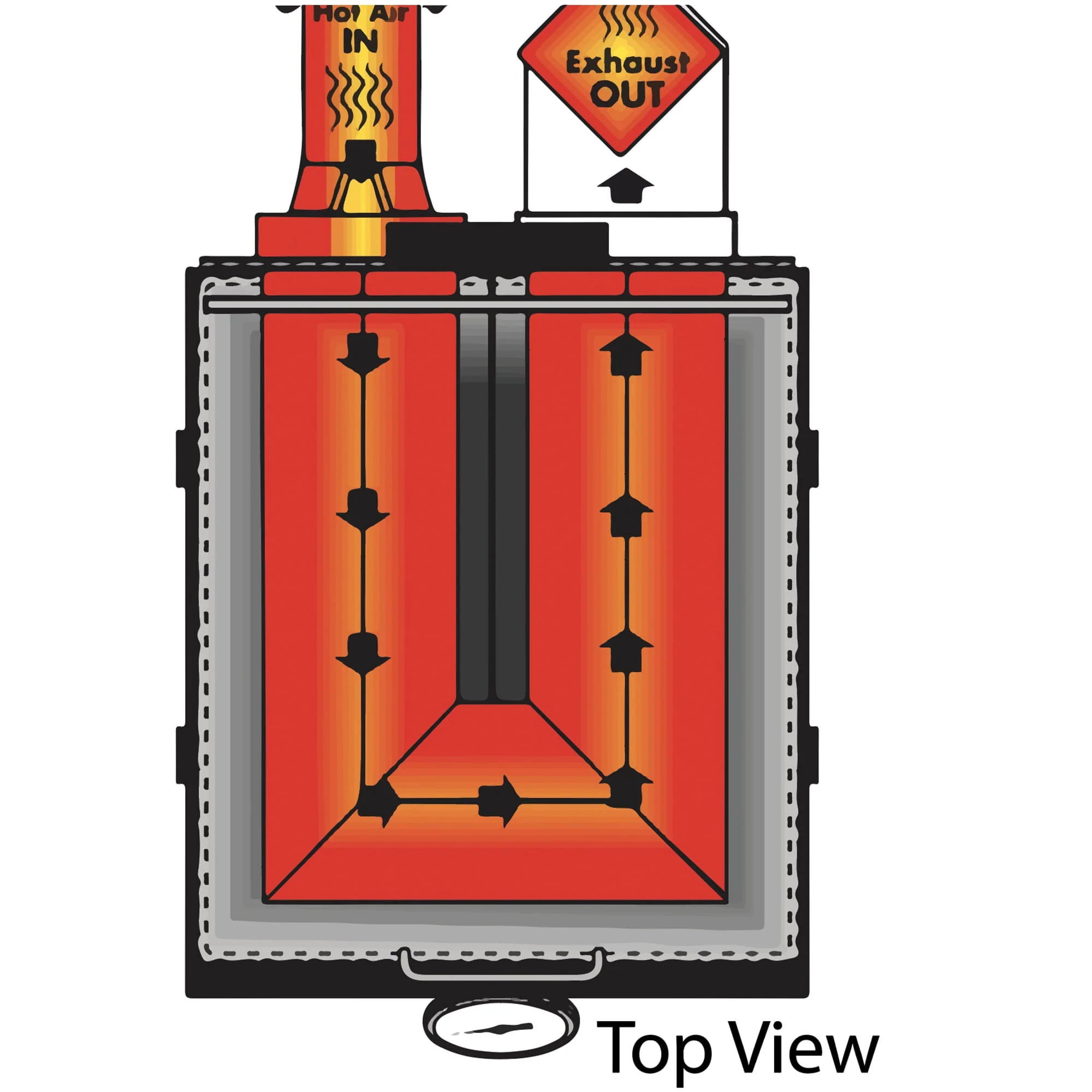 Heating from the “inside out”, a horizontally mounted rear jet burner blasts intense hot air through inner vent tubing under the oil, then exits safely through a rear exterior vertical exhaust. Heat transfers through the metal tubing into the oil.