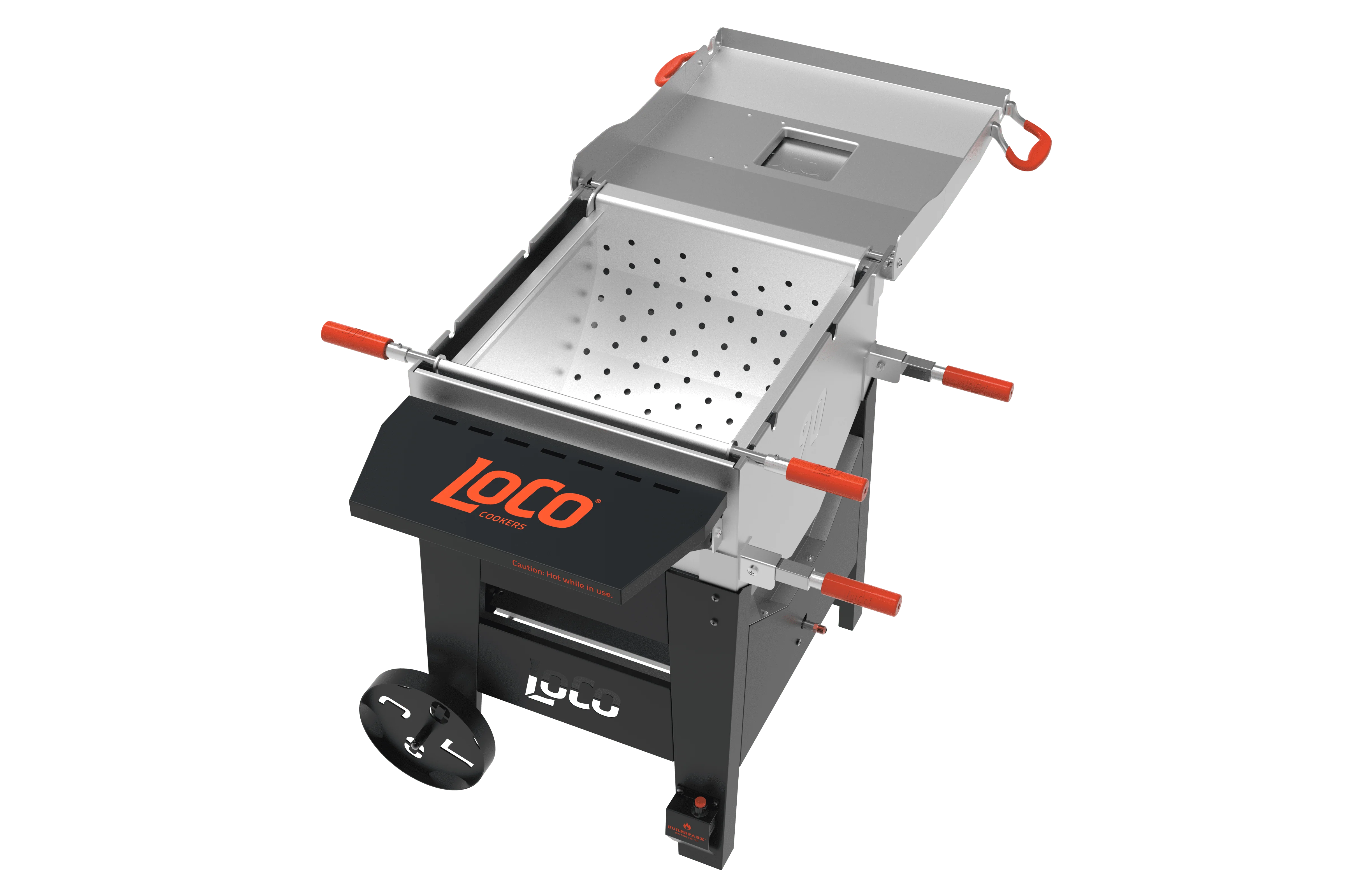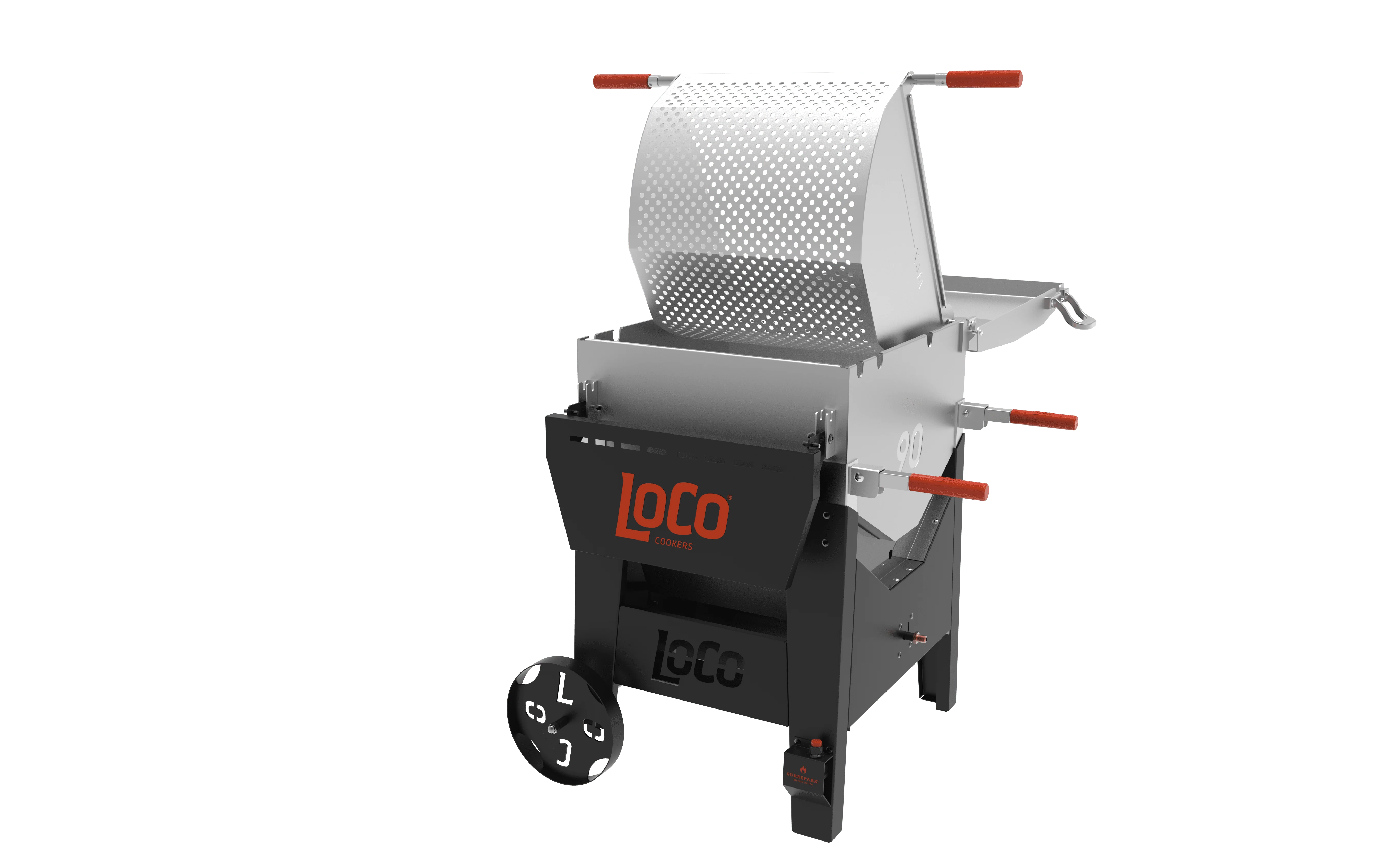 The LoCo Cookers 90 QT Crawfish Boiler’s unique patent pending V-shaped QuickBoil Pot, SureSpark™ Ignition switch and dual jet burners quickly bring water to a boil, so you can cook up a party for your closest friends (and a few strangers) in a snap. The 3 position strainer basket suspends above the boiler for simple easy draining. It also has a king-sized drain valve for quick and easy draining and cleanup.