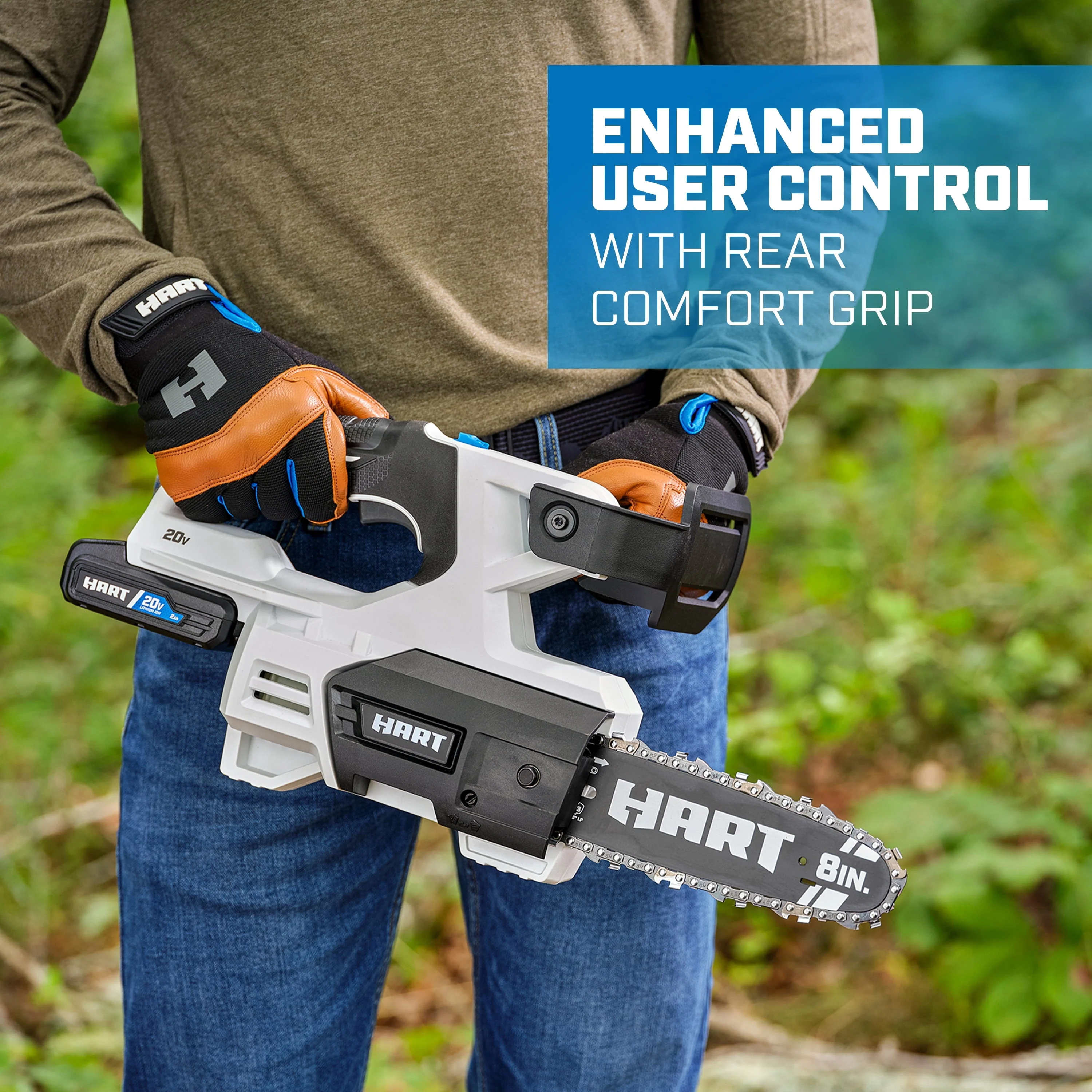 The HART 20-Volt 8-Inch Pruning Saw Kit is the versatile solution for all your light-duty pruning and limbing needs. Its lightweight and compact design ensures precise trimming of limbs and branches, using its maximum cutting diameter of 6-inches to slice with ease. The best part? There's no need for bar & chain oil, saving you the hassle of purchasing and using additional supplies. Enjoy the ultimate user convenience without sacrificing quality. Designed with your comfort in mind, the saw features a rear comfort grip, providing enhanced user comfort even during extended periods of use. Say goodbye to discomfort and hello to effortless pruning. Experience the power of the HART 20-Volt 8-Inch Pruning Saw Kit today. Includes: (1) 20-Volt 8-inch pruning saw, (1) 20-Volt 2.0Ah lithium-ion battery, (1) 20-Volt fast charger, (1) scabbard, (1) wrench, (1) safety tip, and (1) operator's manual. The HART 20-Volt battery in this kit powers all HART 20-Volt tools, outdoor equipment, automotive, and lifestyle items!