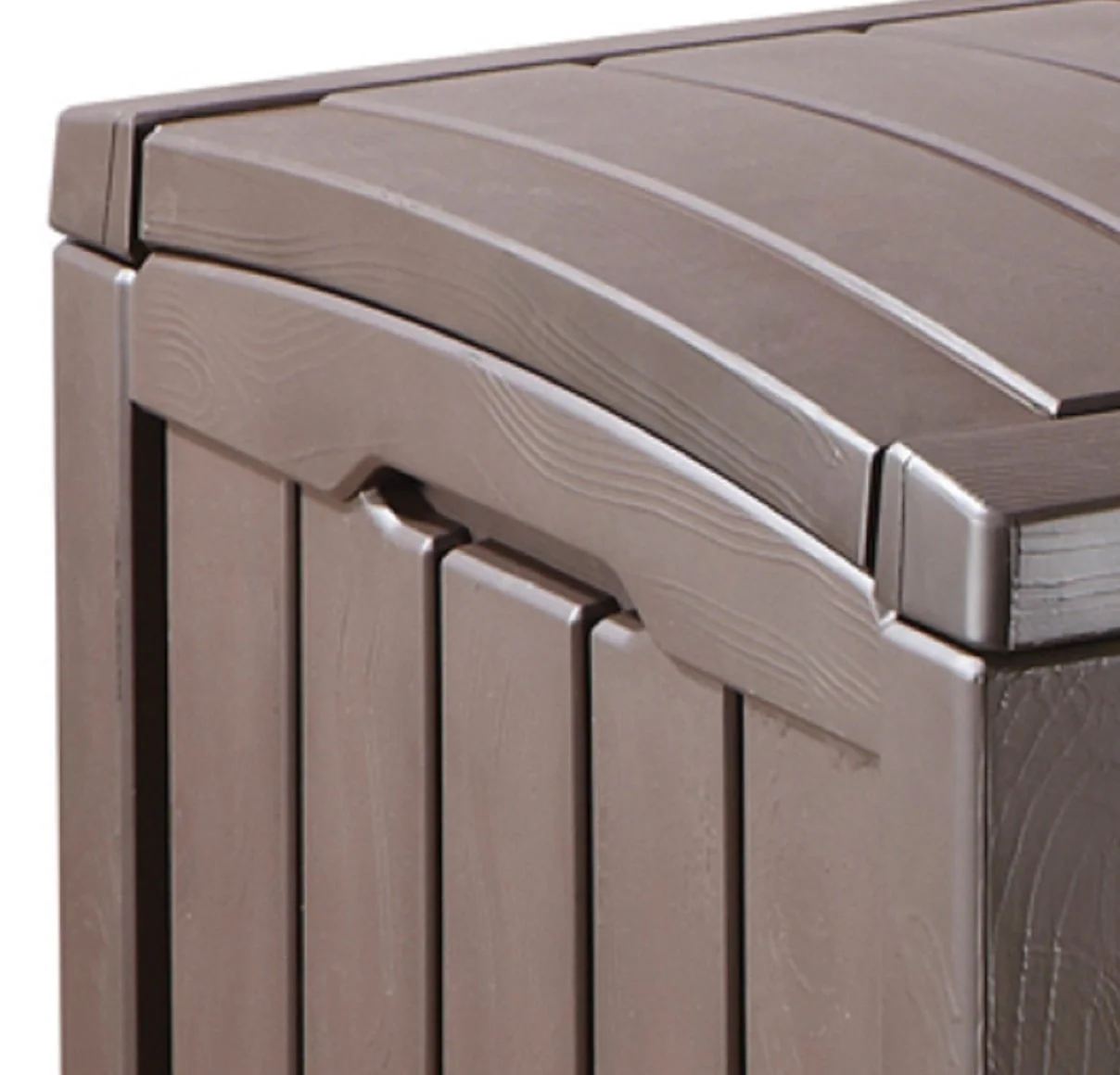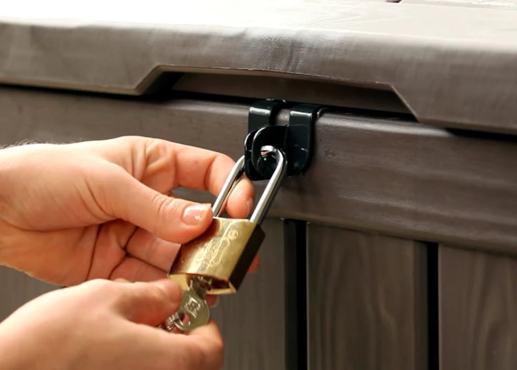 The Glenwood resin deck box has a stylish wood-look design. There is plenty of room for what you need to put away: garden furniture cushions, pool and sports equipment, and lawn and garden items. The Glenwood is practically maintenance-free: it does not rust, dent, or peel. It will not warp or need to be painted. Once they are inside, the Glenwood deck box will keep your stored items dry and ventilated. It is fully weather resistant and UV protected. The Keter Glenwood Deck Box incorporates an automatic opening mechanism, offering easy access to contents. Plus, it has built-in handles for easy mobility. The Glenwood is strong and durable (metal reinforced).