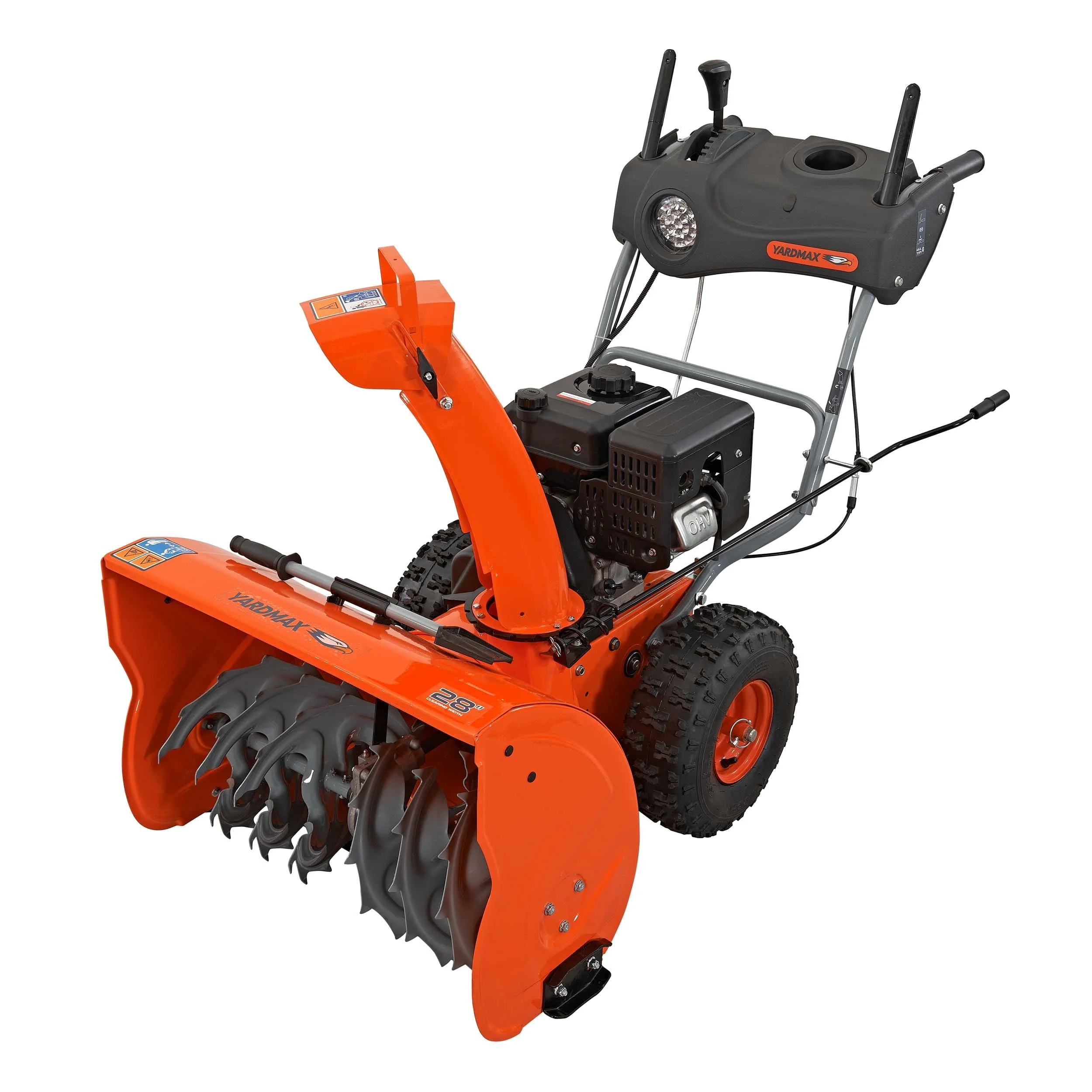 With a 28" snow-clearing width, this heavy duty, dual-stage snow blower easily handles snowfalls in excess of a foot or more. Key features that make snow blowing a breeze with this model are a dashboard with a headlight and convenient controls, room-temperature hand grips, self-propelled drive, and a push button start. This high powered, 28" snow blower is tough on snow - not on the user.