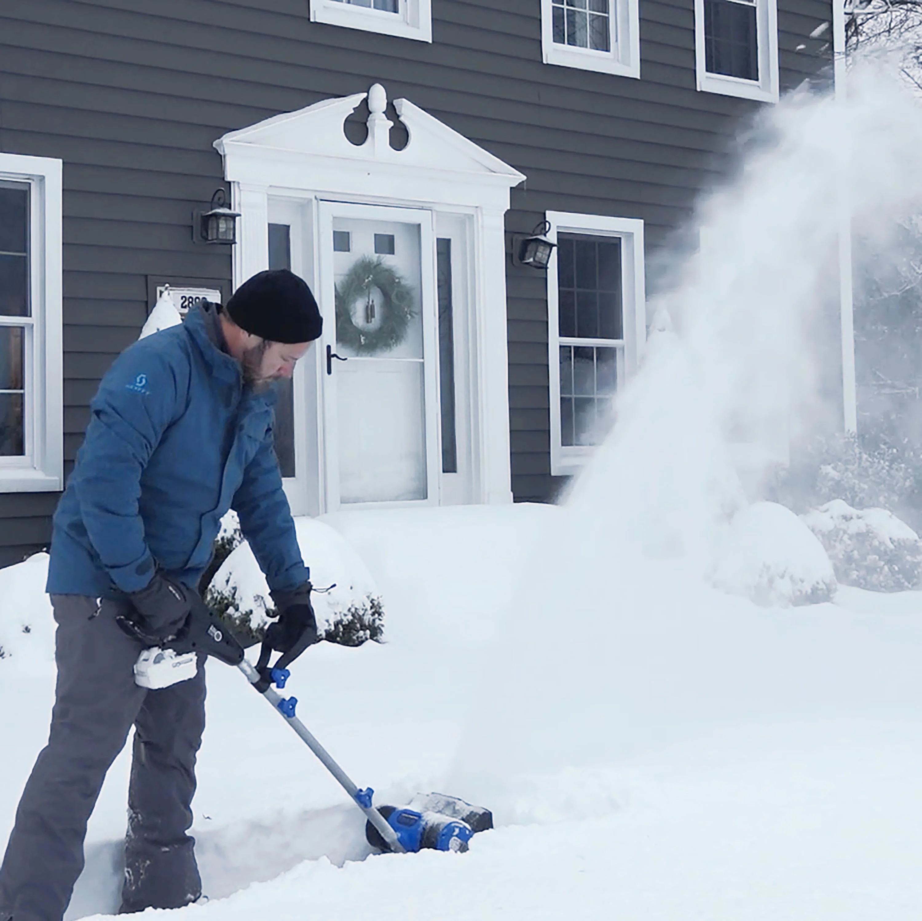 WHEN IT COMES TO SNOW, GO WITH JOE®. Introducing the ultimate grab-n-go cordless snow-busting tool: 24V-SS10-XR from SNOW JOE®. Combining innovation and functionality, SNOW JOE provides an easy, convenient and cordless solution to get snow out of your way this winter. Powered by SNOW JOE’s exclusive IONMAX 24-Volt* lithium-ion battery system, 24V-SS10-XR can quickly clear snow from your porch, patio, steps, sidewalk, and more. The light choice is the right choice with SNOW JOE! Weighing less than 10.9 lbs, 24V-SS10-XR blasts through up to 2040 pounds of snow per charge while the dual-handle design eliminates the need to bend and strain, maximizing user comfort and ease of use. Equipped with a heavy-duty 2-blade paddle auger, SNOW JOE throws snow up to 20 feet away, clearing a 10-inch wide by 6-inch deep path with each pass. And the durable scraper blade at the base of the unit lets you clear right to the ground without damaging your deck or pavement! When the job is done, 24V-SS10-XR stores easily inside of a hall closet for quick, convenient access. And with a maximum charge time of just 140 minutes, 24V-SS10-XR will be recharged and ready for the next task. GET EQUIPPED® this winter with the 24V-SS10-XR 24-Volt* 5.0 Ah Cordless Snow Shovel from SNOW JOE and leave back-breaking snow removal behind you.