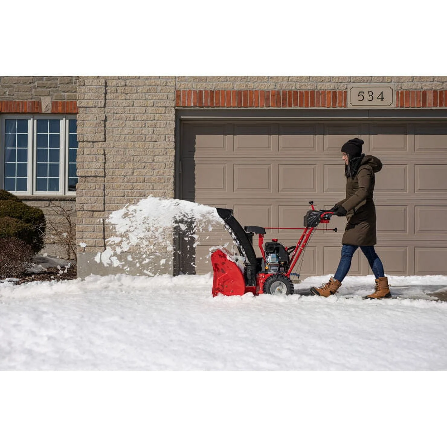 - 2-stage technology with 12 in. serrated steel augers and a 12 in. impeller plows through deeper, heavier snow faster than a single-stage snow blower