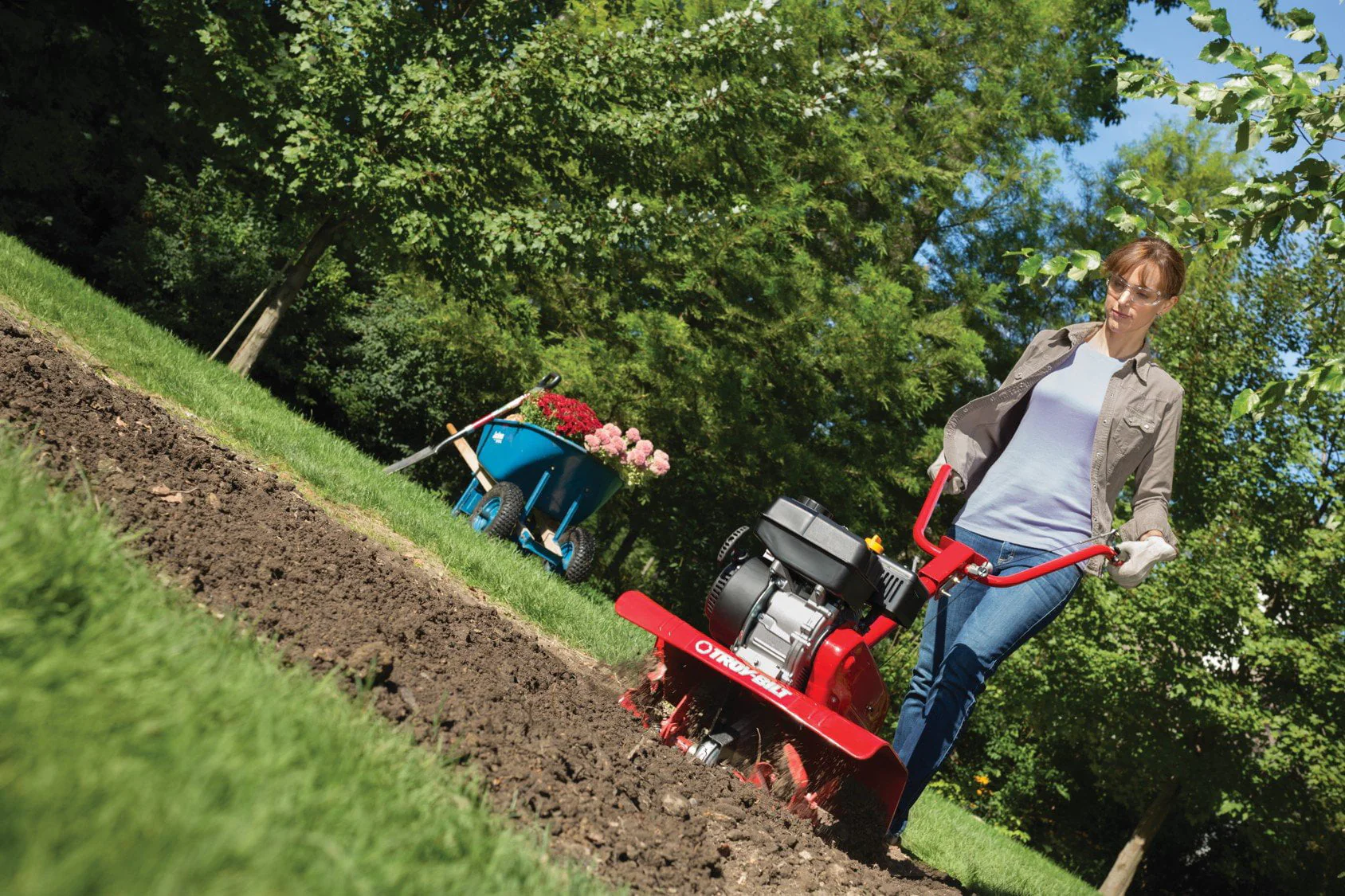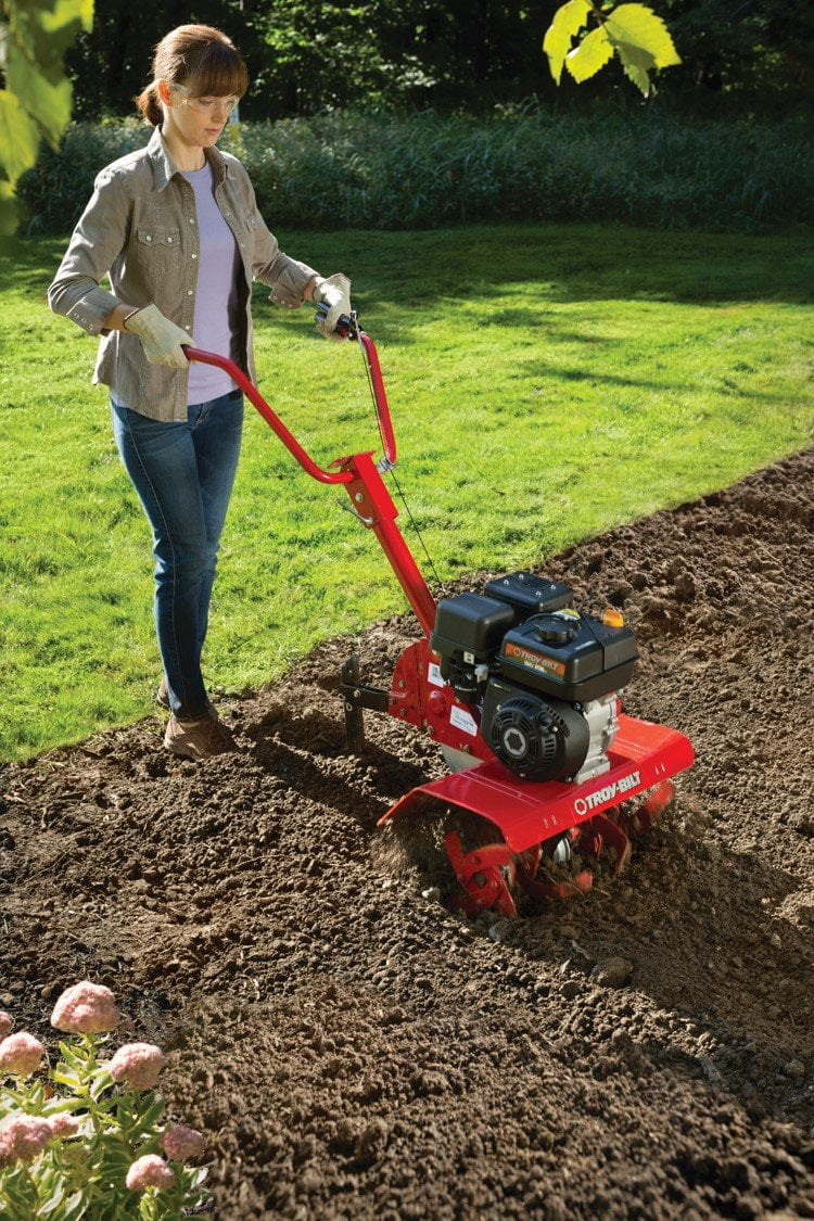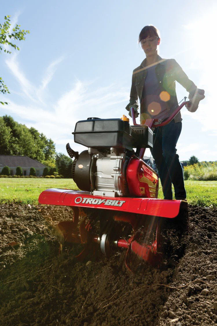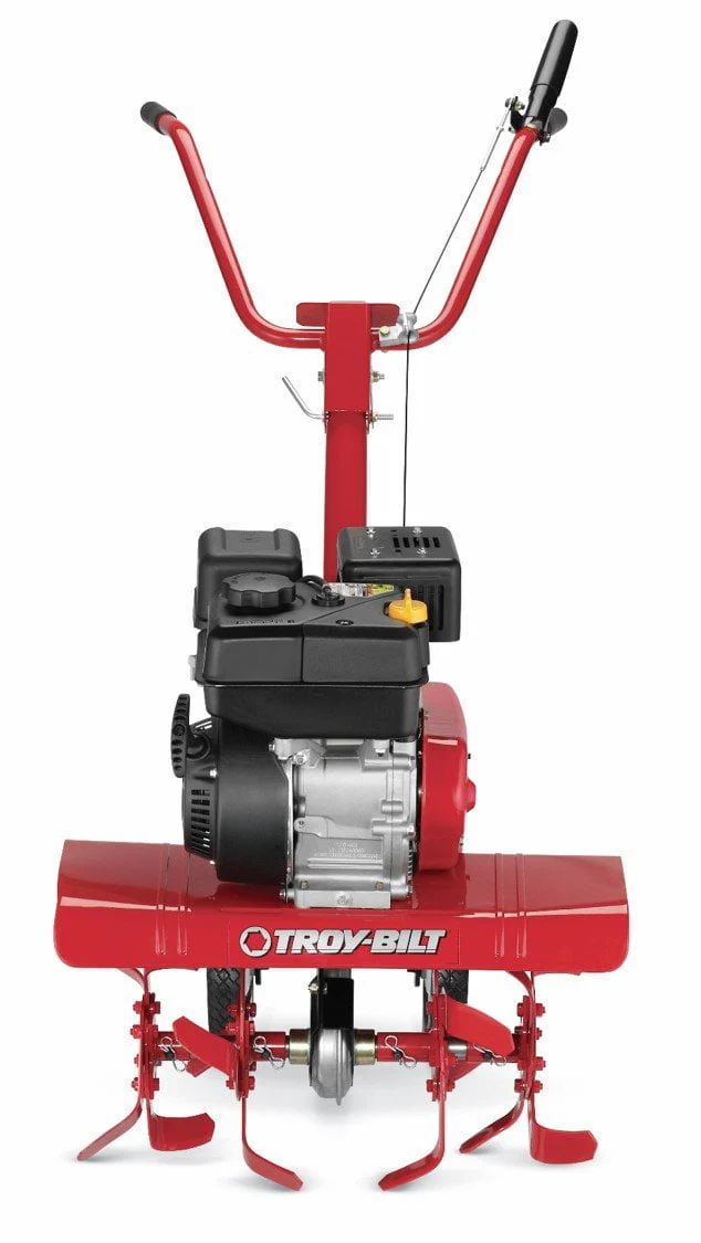 The Troy-Bilt Colt Tiller can help answer your garden needs this season. The Colt FT 208cc Garden Tiller features a powerful Troy-Bilt OHV 4-cycle engine. The patented Bolo tines that cut through soil with ease, resulting in finely tilled, well-aerated soil. The Bolo curve design allows the tines to cut and dig at an offset angle for groundbreaking while the swept-back angle turns under the soil. Equipped with a chain drive transmission and recoil starting system, for easy and hassle-free starts. This front-tine tiller is designed for premium garden soil preparation with the adjustable 13-inch, 22-inch, 24-inch tilling width, and tilling depth adjustable up to 7 inches. The folding plow handle and hand grip will add comfort to your tilling this season. Backed by a 2-year limited warranty.