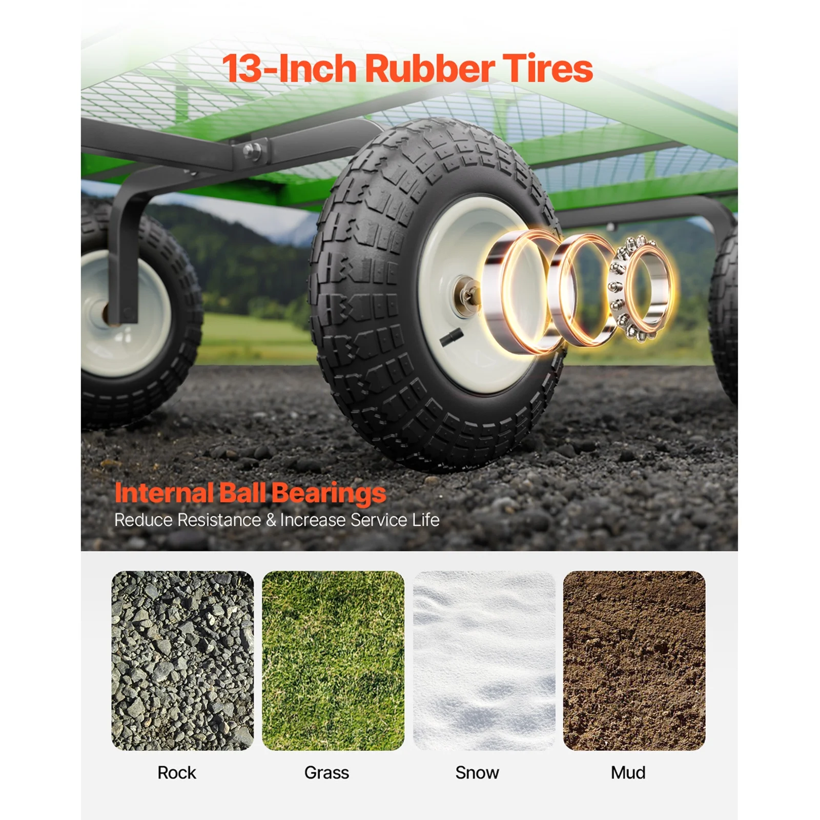 VEVOR 900 lb Heavy Duty Steel Garden Cart, Garden Wagon Cart on Wheels, Outdoor Metal Yard Utility Wagon Carts with 10" Tires and Mesh Removable Sides(Convert to Flatbed) and 180rotating Handle