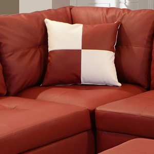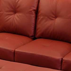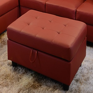 - 3-Pieces Faux Leather Sectional Sofa Set With Storage Ottoman. 2 Square Pillows