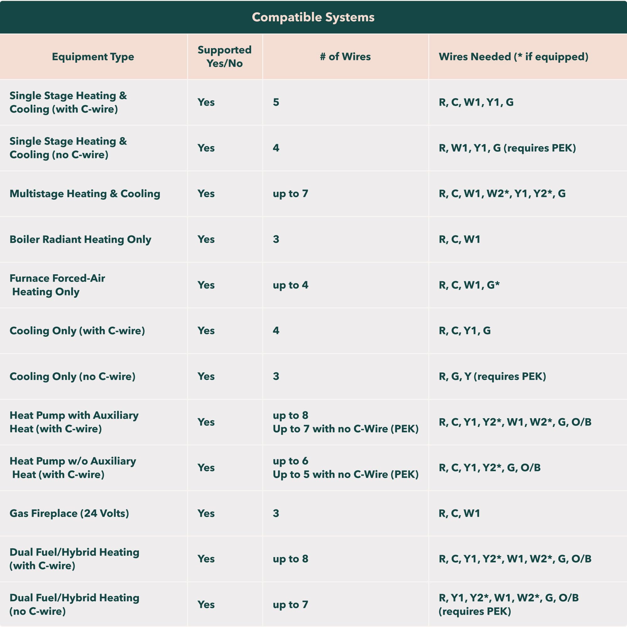 - Compatible with most 24VAC HVAC systems: furnaces. ACs (2H/2C). heat pumps (2H/2C + 2 stage AUX). boilers. PTACs. and fan coil units (3 fan speeds). Includes Power Extender Kit for C-Wire-less homes. ensuring easy installation.