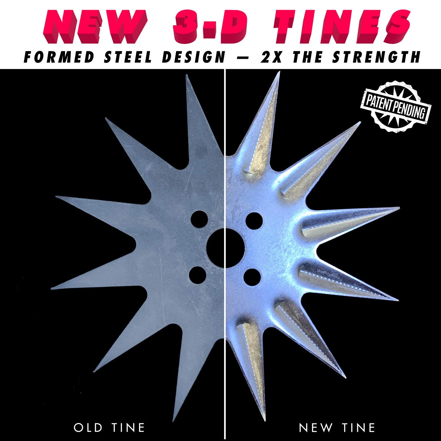 • NEW 3-D Tines for 2X the Strength: Brinly's Patent-Pending 3-D tines in galvanized steel inhibit rust and resist bending. even in compacted soil