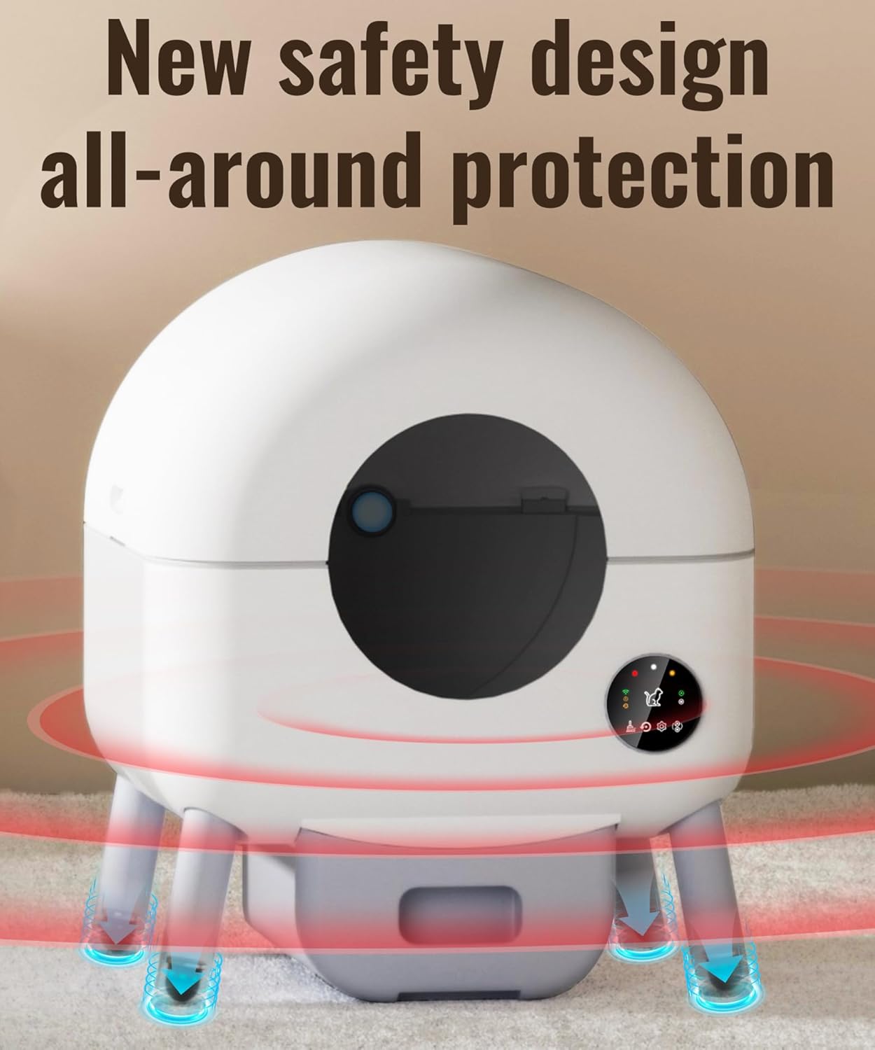 - Cat Safety First: Our self-cleaning cat litter box prioritizes your cat's safety with sensors that detect their presence and a delay mechanism to prevent cleaning cycles while your cat is inside. Rest assured. your feline companion is safe and secure