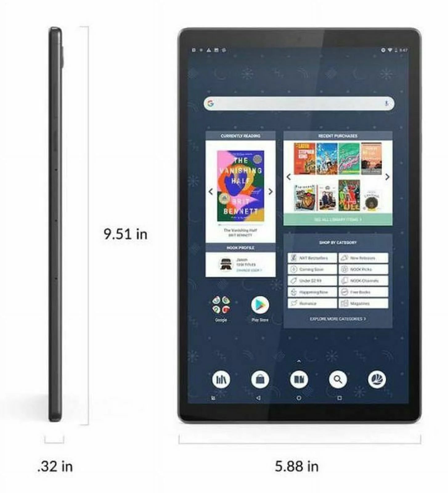 The Barnes and Noble Nook by Lenovo is a 10 inch HD Android Tablet. The Tab M10 HD (2nd Gen)'s full metal body cover is luxuriously smooth and it boasts an 85% screen-to-display ratio. It?s a stylish but durable tablet that everyone in the family will want to use. With more than 10.000 teacher-approved apps and games. plus hundreds of free book. Google Kids Space was created to help children discover. create. and grow. With their own individual account. secure your kids browsing and learning experience with parental controls. Octa-core processing with up to a 2.3GHz main frequency and blazing-fast WiFi give the Tab M10 HD (2nd Gen) the power and speed to keep your family entertained. It also boasts enhanced audio. thanks to dual speakers tuned by Dolby Atmos.