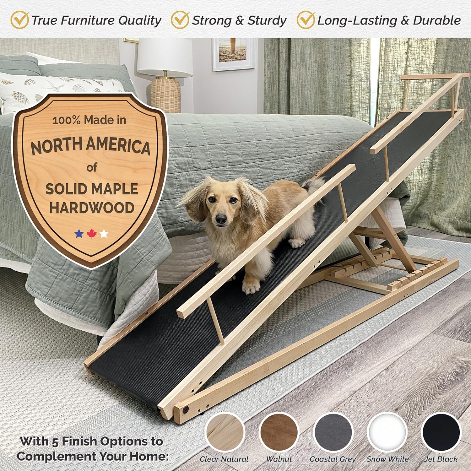 - SOLID HARDWOOD. MADE IN NORTH AMERICA – Our dog ramps are made of solid Maple hardwood (true furniture quality). making them strong. sturdy & durable. with beautiful. unique graining and 5 finish options to complement your home.