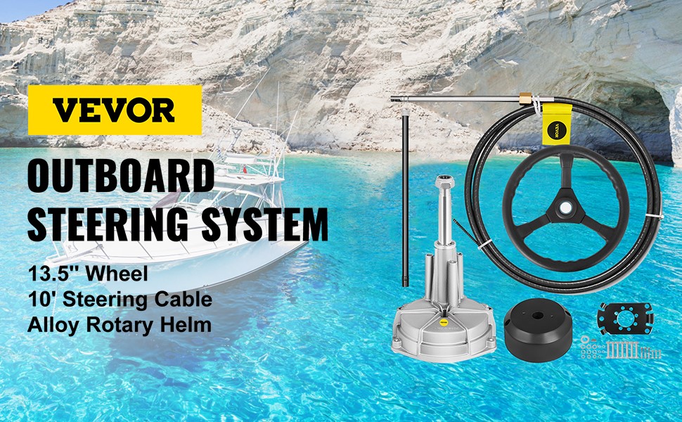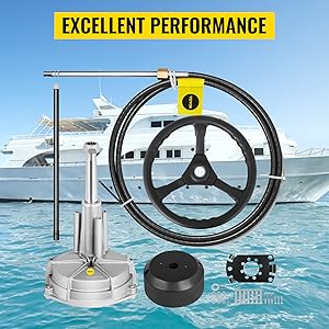• High-Performance Rotary Steering System: The VEVOR boat steering system kit is specially designed and developed for marine use. It comes with a 10 ft steering cable. a standard 3/4″ tapered shaft. a swivel helmet. a 13.5″ steering wheel. a 90-degree bezel kit. and hardware. Enables the vessel to steer accurately and improves work efficiency. Take control of your boat. and create waves all summer long.