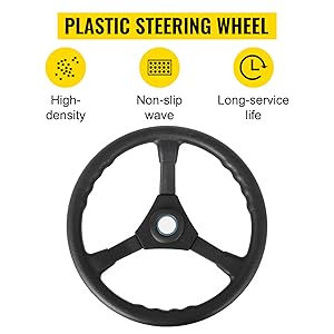 • Durable & Robust Rotary Helm: Characterized by its premium alloy material. the rotary helm is rust-proof and resistant to wear. Heavy-duty material ensures longevity and easy maintenance. Adjustable nuts are used to secure the rudder and wheels.