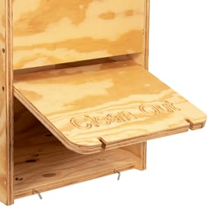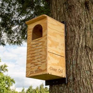 - The Clean Out door makes cleaning the box a breeze. It also allows access to mount a wildlife camera to watch your owlets grow.