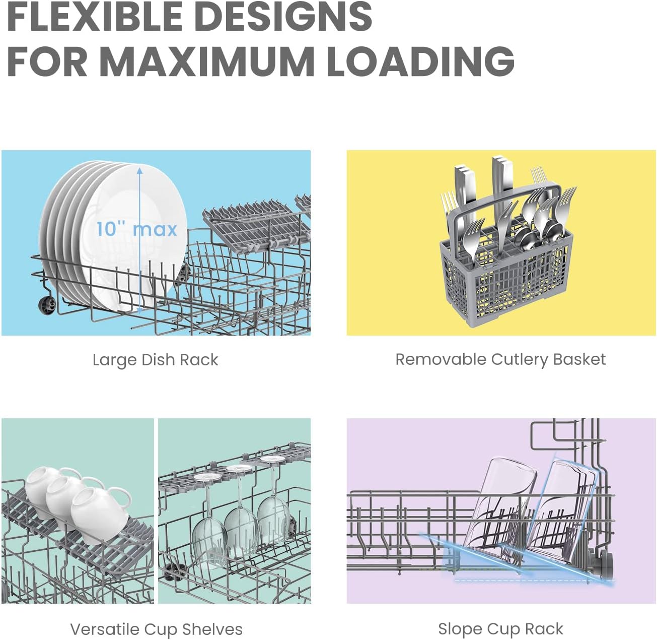 • 【Speed Program】- Only takes you 45 minutes to get all dishes cleaned. perfect for hurry-up situations. like holding a multi-round party. Accompanied with Energy Star compliant. water consumption can be as low as 2.77 gallons of water. which greatly saves your costs.