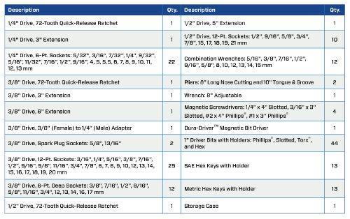 - Contains a carefully selected assortment of hand tools needed for most industrial. mechanical. and consumer applications