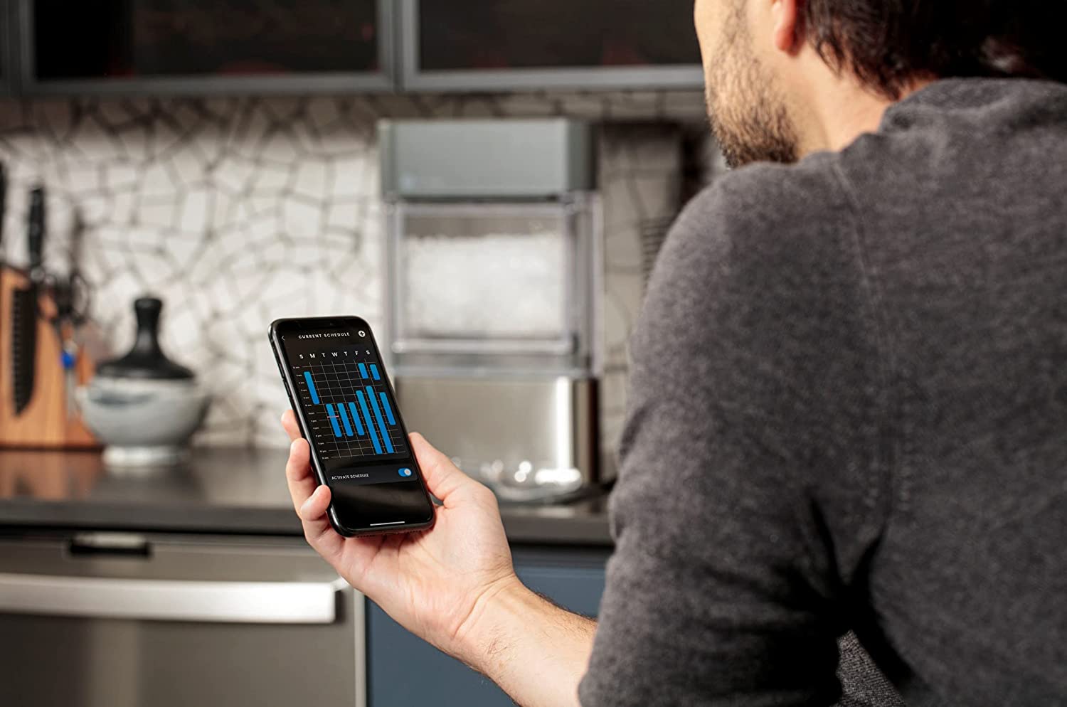 Easily pair your ice maker's built-in WiFi with the SmartHQ app to monitor device status and schedule fresh ice. Plus. receive automatic software updates that include the latest ice maker features and access voice control capabilities through Alexa and Google.