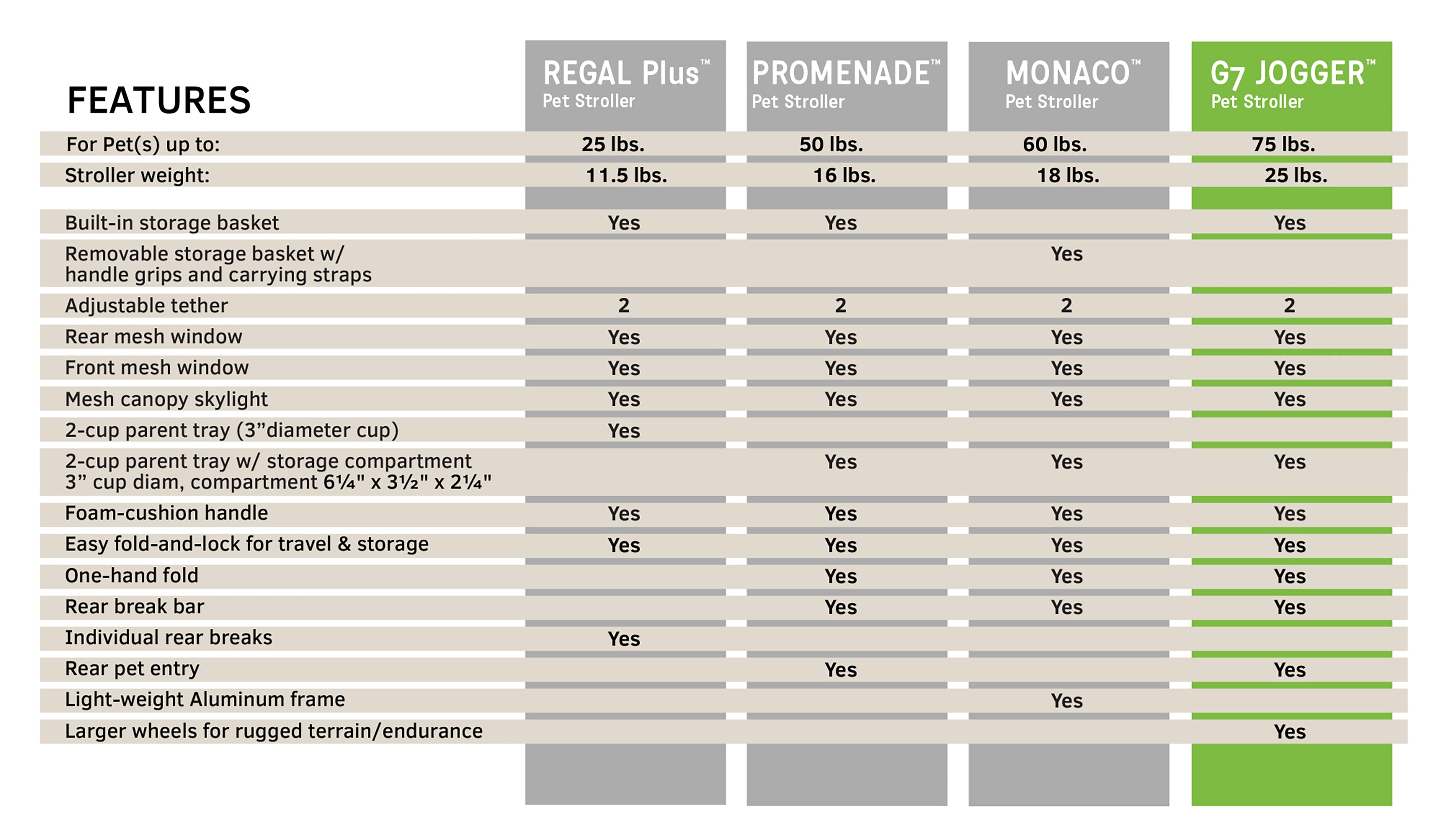 Another feature of this stroller is that it has?more kick space when pushing the stroller for a more comfortable pace when walking.The stroller has a smart fold mechanism that allows for it to fold easily just from the handle for storage. The Gen7Pets Jogger Pet Stroller provides convenience??and comfort for both pet and owner.??