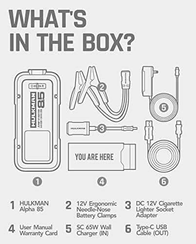 - Powerful Performer: 2000 Amps peak cranking amp can start the vehicles up to 8.5L Gas/6.0L Diesel engines. A single charge can achieve 60 times jump-start.