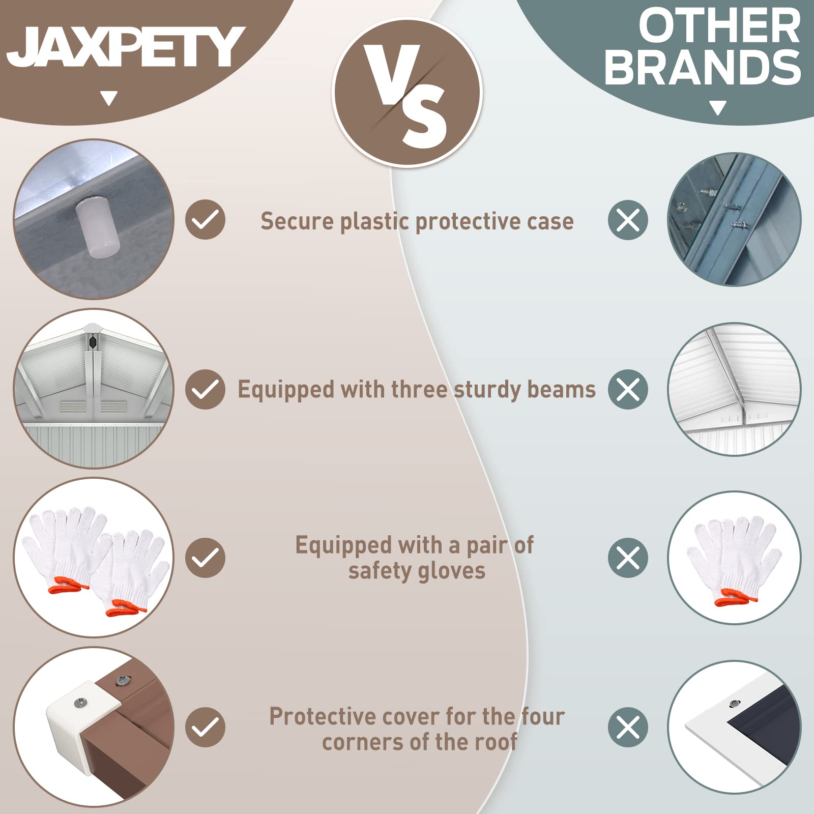 - ud83dudd27u3010Sturdy Metal Shedu3011:This tuff shed is made of thickened galvanized steel. which is waterproof. rust-proof and UV-protected. making it easy to cope with all kinds of bad weather. The roof is also reinforced with 4 heavy-duty beams from 3 different places. making the whole structure more solid.
