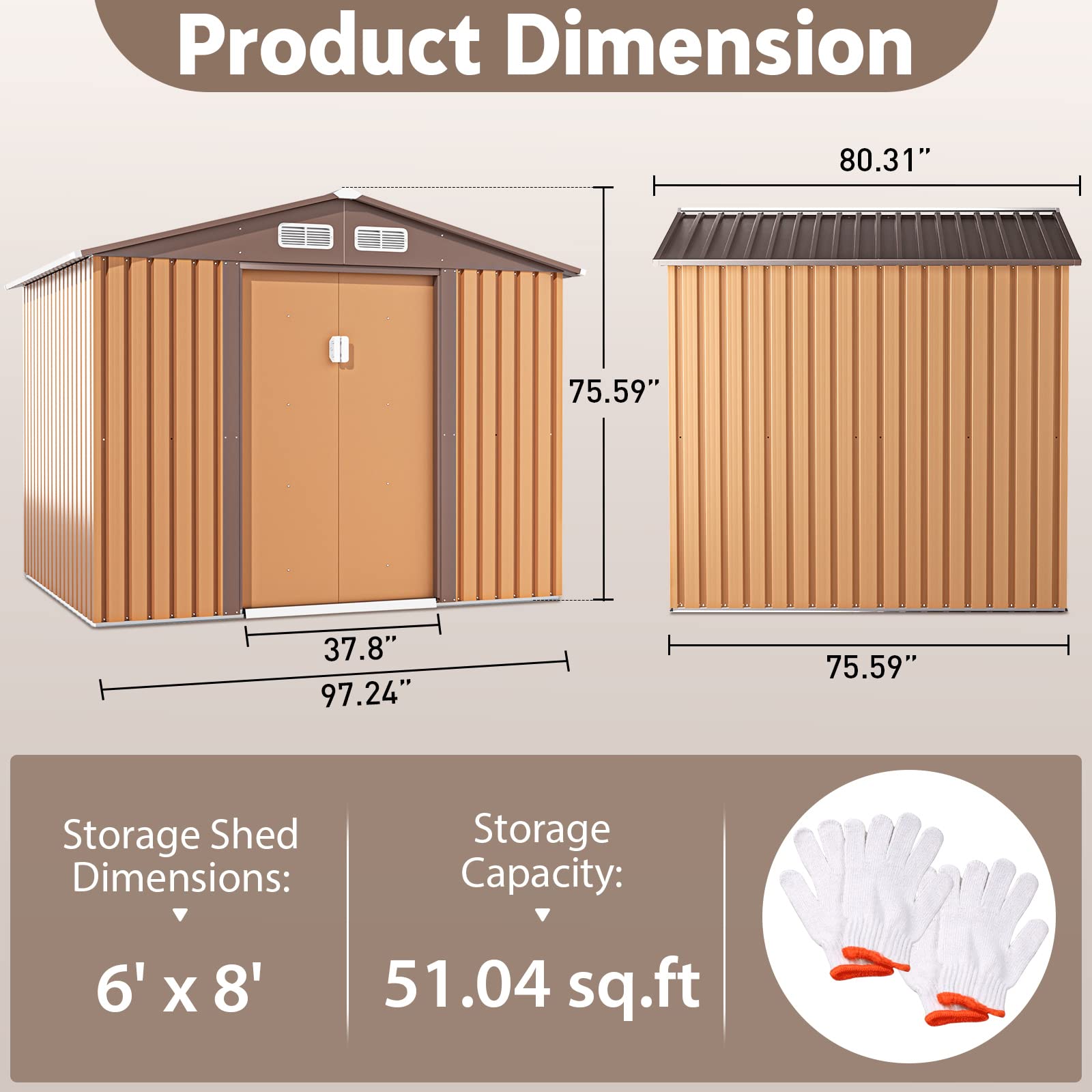 - ud83dudd27u3010Spacious Storage Shedu3011: Our outdoor shed is designed with a spacious inner measured 97.3″L x 75.61″W x 76″H. making it easier to store your large gardening tools and other backyard items. such as bike. lawn equipment. pool supplies. barbecue supplies.