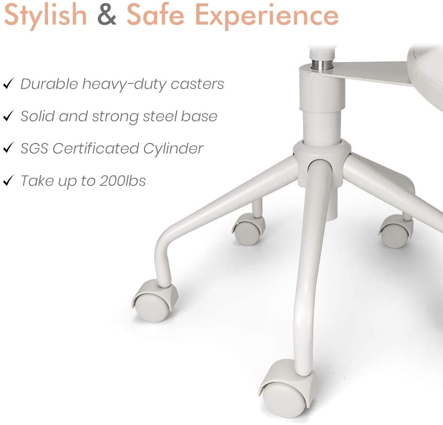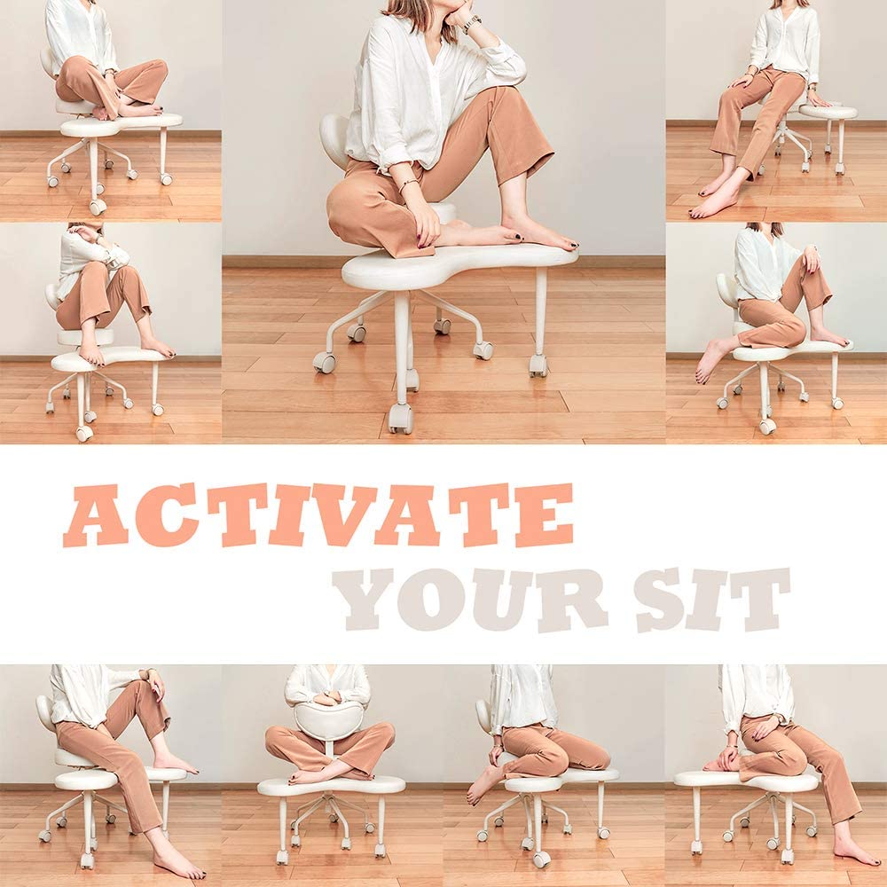 EXCLUSIVE PATENTED DESIGN – HOME OFFICE SOLUTION: As a revolutionary chair. it allows you to sit in a variety of different positions such as cross-legged. squatting. kneeling. and countless others. Perfect for home workers. yoga lovers. meditation fanatics and everyone who feel tired with ordinary fixed sitting positions and would like to break the boundary of those conventional office chairs. ACTIVATE YOUR SIT: Created by ergonomic engineer and designers. it provides an active flexible seating outlet that promotes constant movement and stimulation of your body. Change positions from time to time and sit in your most comfortable way. Long-duration sitting will no longer be boring or painful. FLEXIBLE TO SWITCH: Designed with the 360-degree swivel footstool. it gives you more freedom to sit. Other than switching from different special positions. when you are not in the mood to casually sit or just want to sit as usual for a while. you can always turn it aside and use it as a normal chair. COMFORT & PAINLESS: Padded with the high resilience. high density foam. the 3.7-inch extra thick seat cushion plus the 1.5-inch thick footstool provide comfort support for your hip. feet. knees and ankles while switching positions. The crescent-shaped ergonomic backrest gives perfect lower back support and help relieves back pain. SAFE & DURABLE: Assembled with the SGS certificated cylinder. solid steel base and the heavy-duty casters. it will ensure you a safe and durable experience. Its polyurethane leather material is extremely soft touching and easy to be cleaned with leather cleaners. Even the white color won't be a pain.