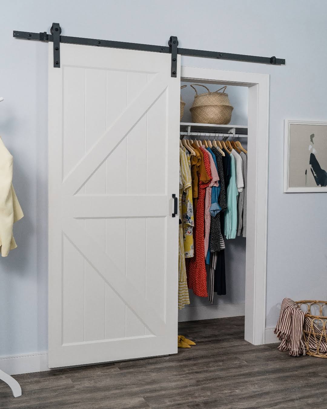 Renin Hollow Core K Brace 36-in x 84-in White K-Frame Prefinished MDF Single Barn Door (Hardware Included) | HC052P01PR1PRE36084