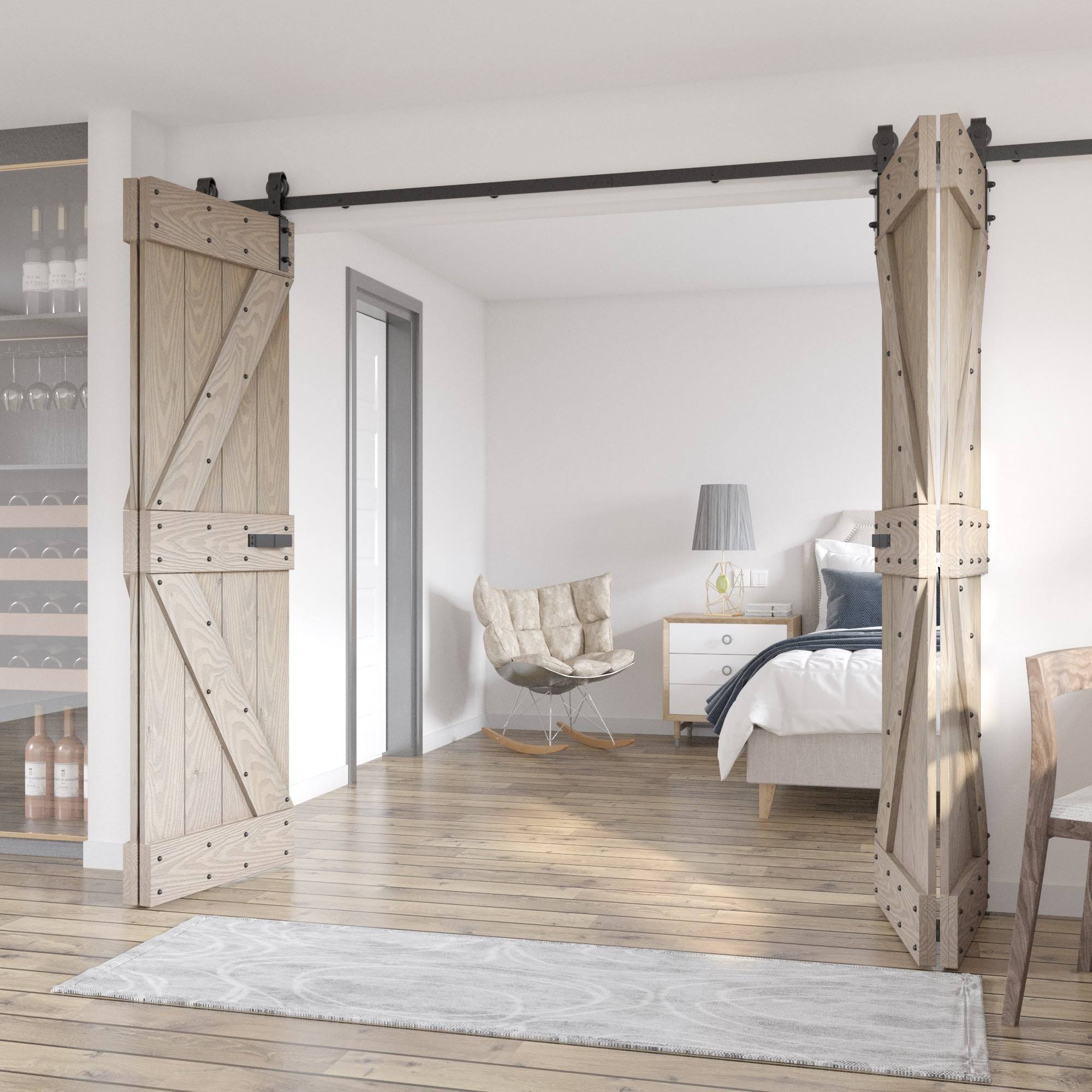 Emboss layer styles add 3D effect on the surface which you can feel the natural texture.100% Hand-made in the USA with natural fragrance of pine wood, which is more environmental friendly, Choosing an environmentally friendly door panel is most important for health. All paints are from the USA. Door comes in unassembled panels, adult assembly is required. Door has pre-drilled bore holes for quick and easy installation. Package includes: 2 Barn door leaves (unassembled panels), 1x Sliding Bi-Fold hardware kit, 1x handle, and all necessary screws required for installation. COAST SEQUOIA fine-select premium pine wood sourced nationally from the North America. Each piece has unique and natural wood grain. Every single barn door is hand-stained to protect and reserve the beauty of the wood. Bi-fold Barn Door with sliding hardware kit contains everything needed to transform any doorway from a traditional door into a convenient, space-saving and stylish sliding bi-fold door.