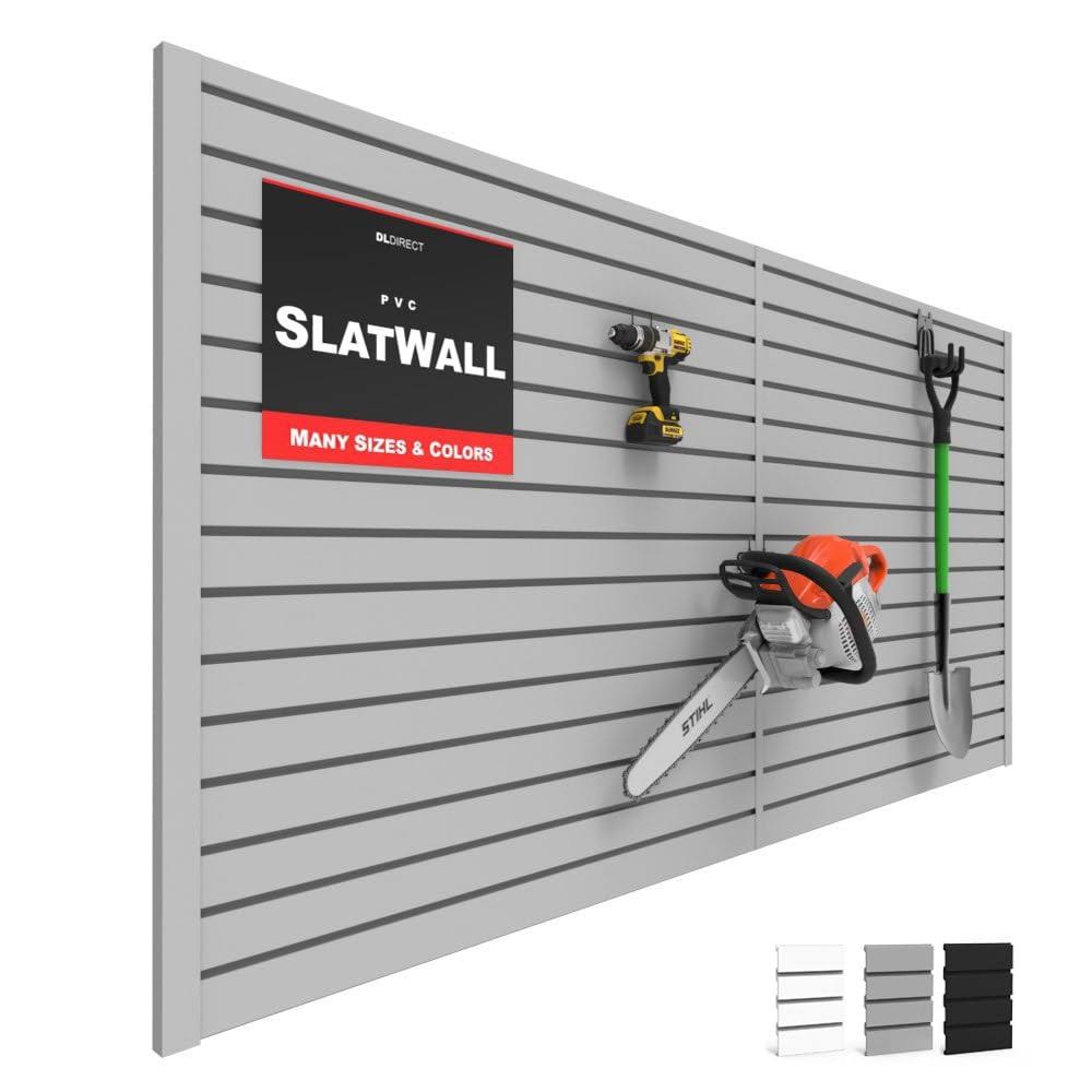 Makes Storage, Organization & Display Simplewarped, Flimsy Slat Wall Paneling Refuses To Line Up Right, Leaving You Frustrated. - Thats Why Our Slat Wall Panel System Utilizes The Highest Industrial Grade Pvc Thats Incredibly Durable & Resilient. Each Panel Is Forced Through Aluminum Dies At Tremendous Pressures To Create Sturdy, Interlocking Slat Board Shelves With A Seamless Fit That Smoothly Attaches With Just A Few Screws Onto Wood Studs, Drywall, Or Masonry. - The T-Channel Design Of Our Garage Wall Panels Feature Horizontal Sections That Let You Easily Adjust Hooks & Slatwall Accesories To Create Your Ideal Setup From Craft Rooms All The Way To Retail Spaces. - Designed For Indoor & Outdoor Use, Each Uva-Safe Sheet For The Wall Storage System Wont Fade, Dry Out, Crack Or Peel Over Time & Is Completely Impervious To Water & Moisture. Our Heavy Duty Slatwall Shelves Are Also Stain Proof & Unaffected By Chemicals & Oils, Making Them Perfect In Factories Or As Wall Mounted Garage Storage. - The Dldirect Slatwall Garage Wall System Is Available In White, Tan, Grey, & Black. With 9 Different Sizes, You Can Easily Combine Them Or Cut Them Down For The Perfect Fit. Includes Finish End Caps & Mounting Hardwareat Dldirect, Were Committed To Manufacturing Superior Quality Garage Organizers And Storage Systems That Wont Let You Down. Featured On Hgtv, Extreme Makeover Home Edition, Diy To The Rescue, Garage Mahal, Popular Mechanics, & Metal Architecture Magazine, Were Proud To Offer You One Of The Leading Plastic Slatwalls In North America.