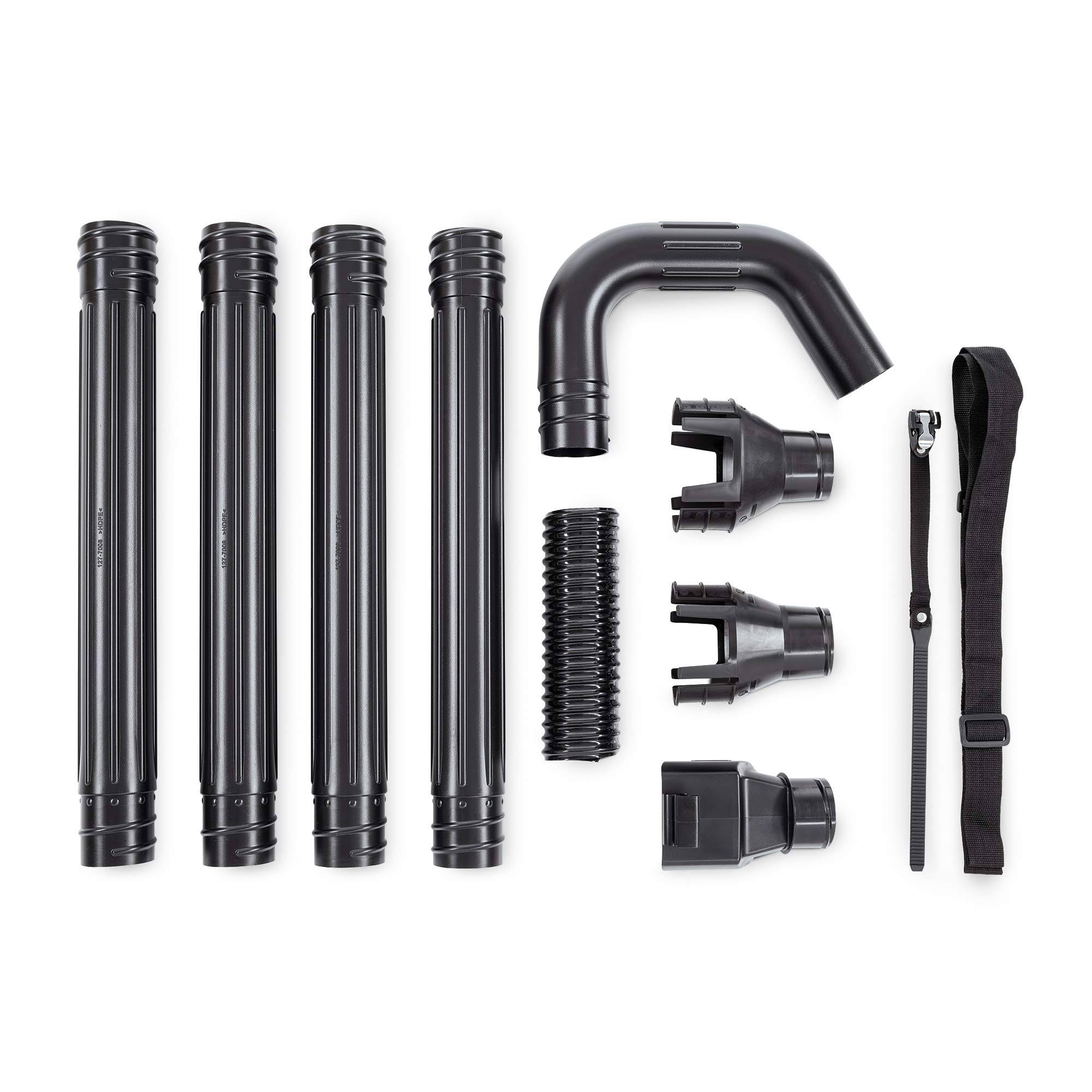 Use the safe, ladder-free way to keep gutters clean. The Toro Universal Gutter Cleaning Kit easily attaches to most battery, electric, and gas handheld leaf blowers to reach gutters on one-story homes or uneven landscapes. Easy-to-maneuver design and powerful airflow help ensure removal of packed debris, wet leaves, pine needles, and more to effectively clean hard-to-reach areas. Safely clean gutters from the ground. Universal attachments fit most blowers. 4 extension tubes for 11 ft. max reach. Quick, tool-free assembly. Fits Most Handheld Blowers Three universal connection collars that attach to most brands of leaf blowers. The ratchet strap tightly secures the connection collar to blower's end. Maximum Maneuverability Get maximum maneuverability with the flexible tubing that won't kink or block airflow as you clean. 11-Foot Reach Adjustable length with 4 extension tubes for maximum 11-foot reach. Reduce Fatigue Reduce fatigue and boost control with a shoulder strap that frees hands to adjust speed. Powerful Airflow Connectable, wide-diameter tubes blow out leaves and debris with powerful airflow. Focused Power to Direct Air Gutter nozzle focuses and directs air forward to drive leaves. Safely Clean Your Gutters Great for safely cleaning one-story homes, wooded lots, and/or tricky gutter access using your leaf blower.