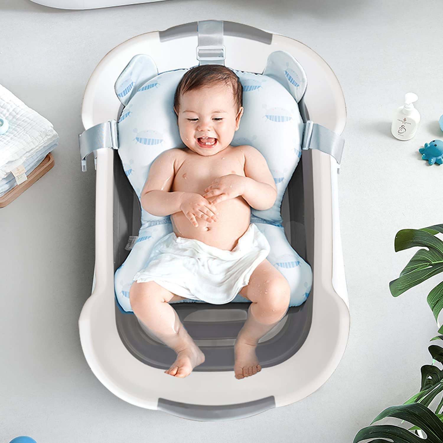 [Multi-scene Uses]Except babies, this folding bathtub is also perfect for small-to-median pets like dogs and cats bathing, soaking and hauling laundry and storage container for toys, icing beverages or clothing. Portable and fits in the car trunk RV. Waterproof and can be used in most indoor/outdoor scenes. [NOT INCLUDING INSERT][Space Saving with Expanded Size]23.6 x 15.7 x 10.8 inches, 2.7 inches height when folding, you can easily hang it on the wall or storage it in narrow space where fits. This collapsible bathtub for newborn is about 2.8 pounds, with capacity about 27 liters.[ User Friendly]With drainage plug to easily drain, and with handle groove to easily carry with. Instruction alongside the product showing the way to easily pop-up and fold.[ Durable]Made of resilient and strong PP (white part) and TPR (gray part), this foldable bathtub's heat resistant to 248��F. BPA Free, non-toxic, no pungent smell.[ Strong Supportive Design]With hard white bar design in the middle, this portable bathtub could be stronger enough to support keeping straight with hydraulic pressure.