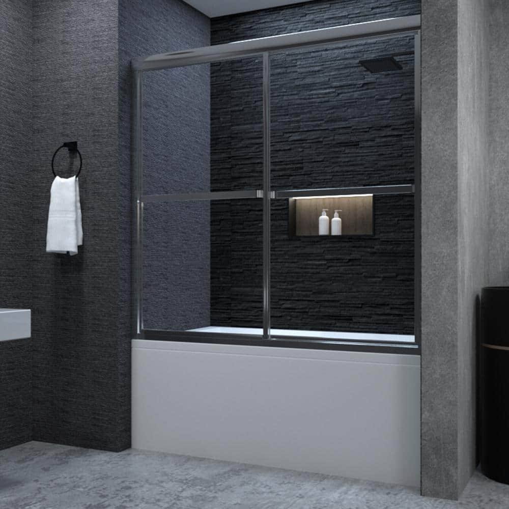 niveal Alvin 59 in. W x 56 in. H Sliding Framed Tub Door in Chrome Finish