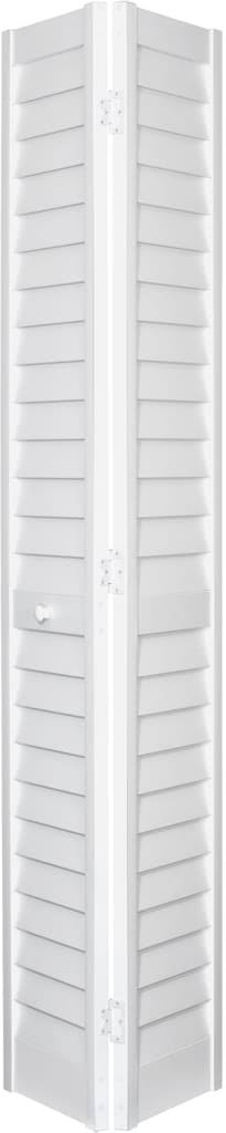 3 In. louver/louver white bifold door - ready to install - constructed of PVC - steel reinforced - fashionable 3 In. louvers - track, hardware, and knob included - resists humidity, dust, termites, mold, mildew - no warping, cracking, splitting, or chipping - great for areas that need ventilation - universal, opens left or right - can be trimmed up to 1.25 In. off bottom - for 56 In. opening, order two 28 In. doors.