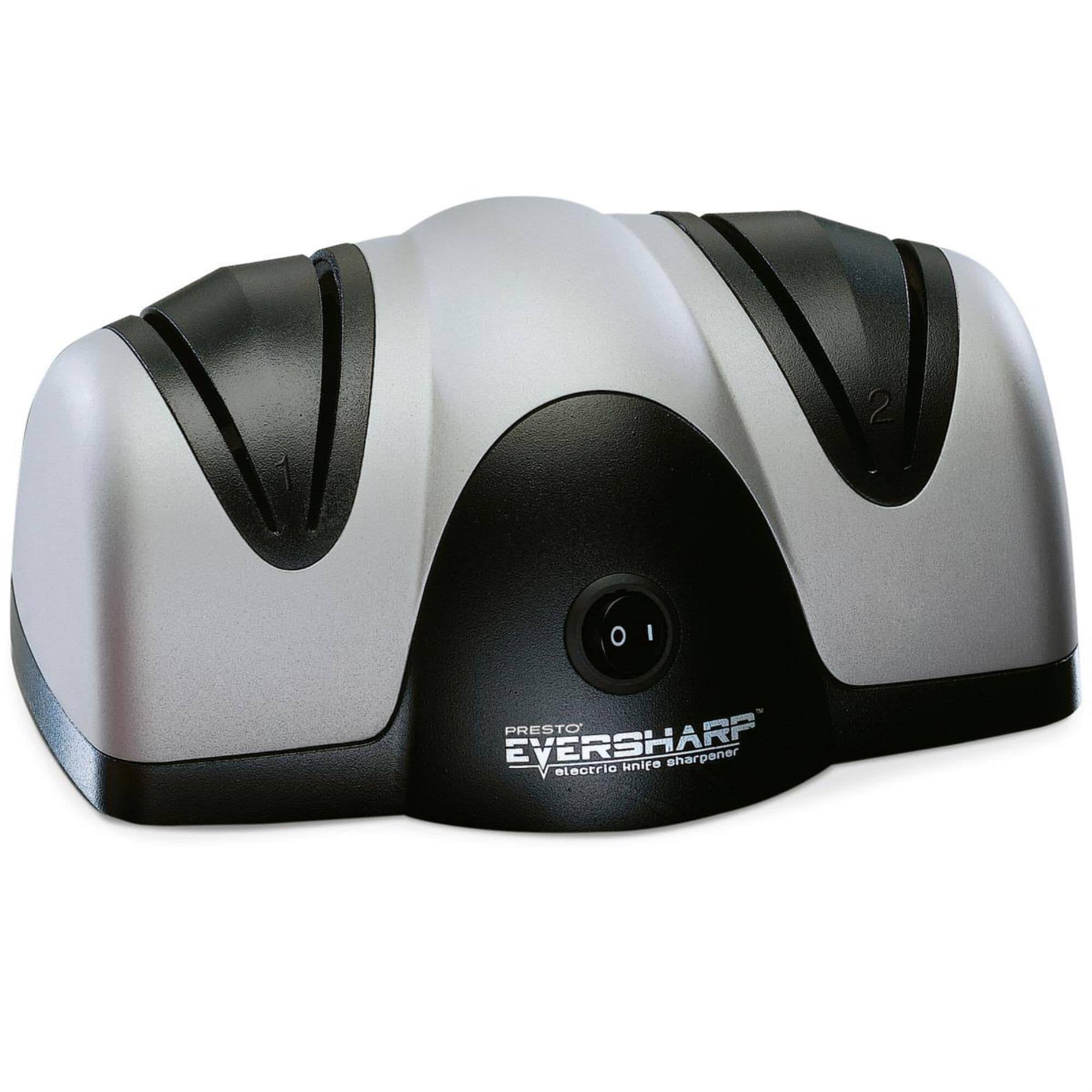 Sharpen kitchen and sport knives to a razor-sharp edge fast and economically with the EverSharp 2-stage electric knife sharpener. Sapphirite sharpening wheels grind a precisely angled edge then fine hone and polish the blade to a razor-sharp edge. Get professional results at home anytime on most any non-serrated blade. Sapphirite sharpening wheels are made of the same ultra-hard material used in professional sharpening shops. Precision blade guides hold the knife at the perfect angle for no-guess sharpening. Simply draw the knife through each slot a few times for a razor-sharp edge.