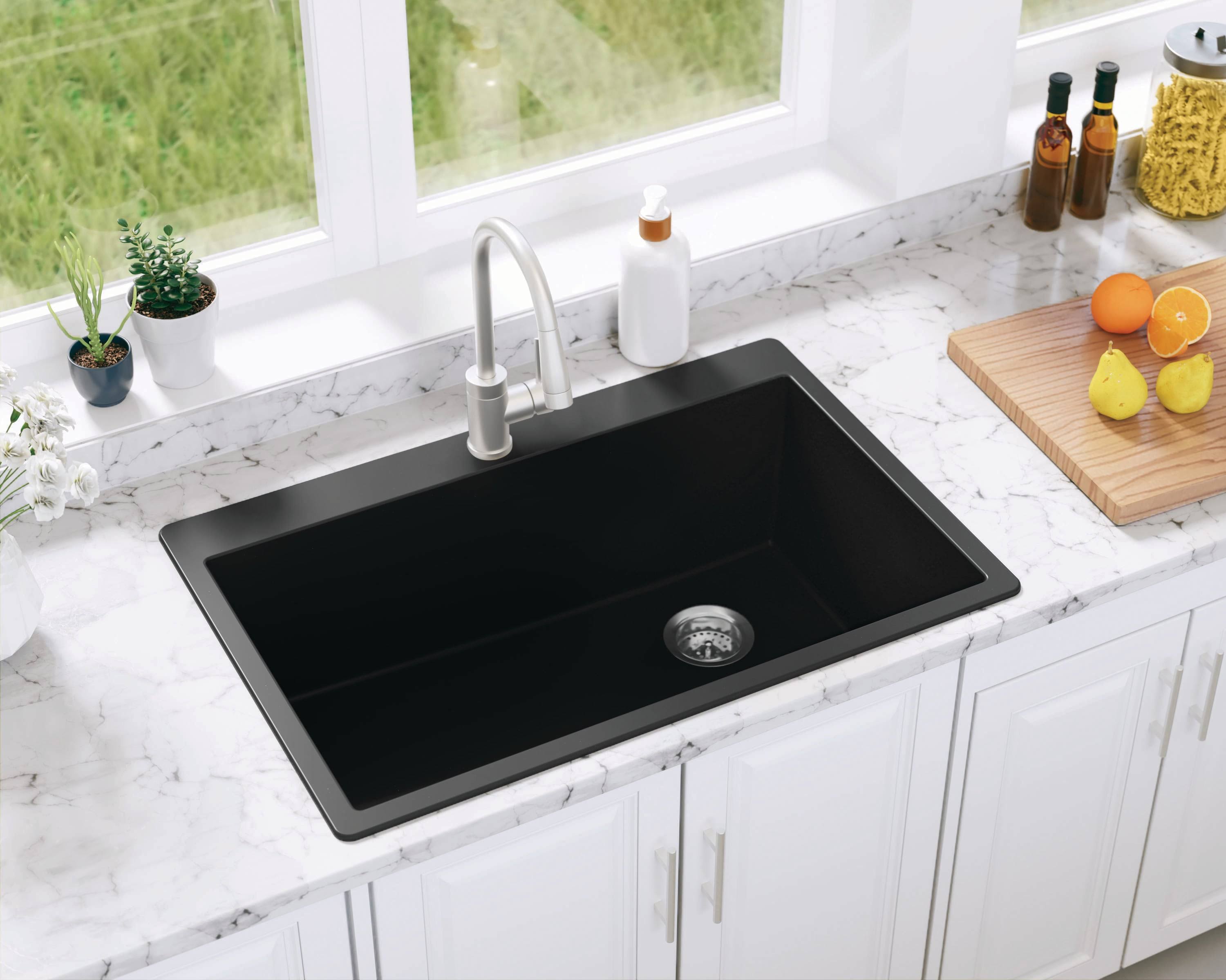 • Allen + Roth DeForest Collection Dual-Mount 33-in x 22-in Nero Granite Single Bowl 5-Hole Kitchen Sink in Black | SIGN100XLDM13