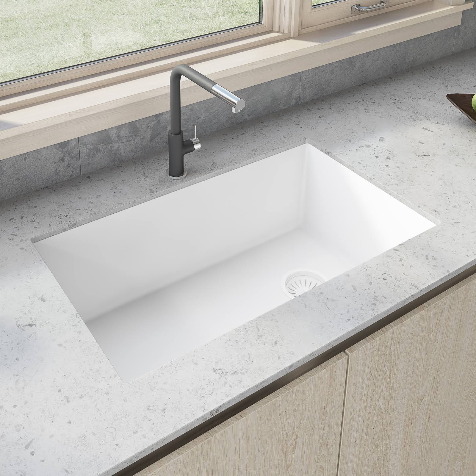 - Exterior Dimensions: 31-3/4 in (wide) x 19-1/4 in (front-to-back); Interior Dimensions: 29 in x 16-3/8 in; 9 in (bowl depth)