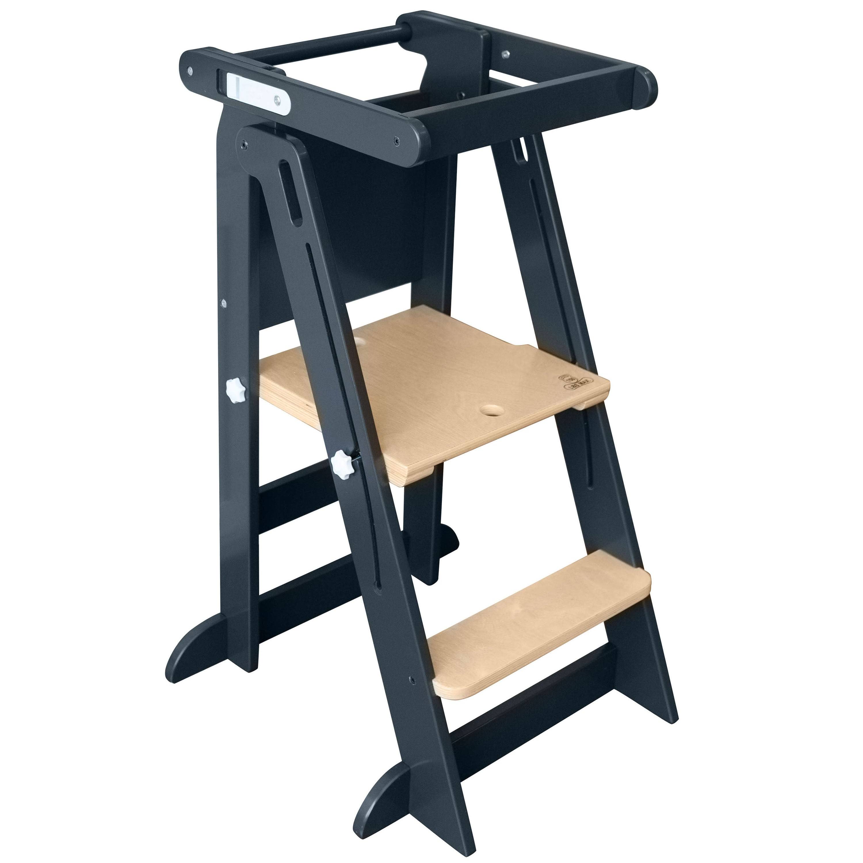 • Little Partners Learn 'n Fold Learning Tower Toddler Step Stool in Charcoal w/Natural
