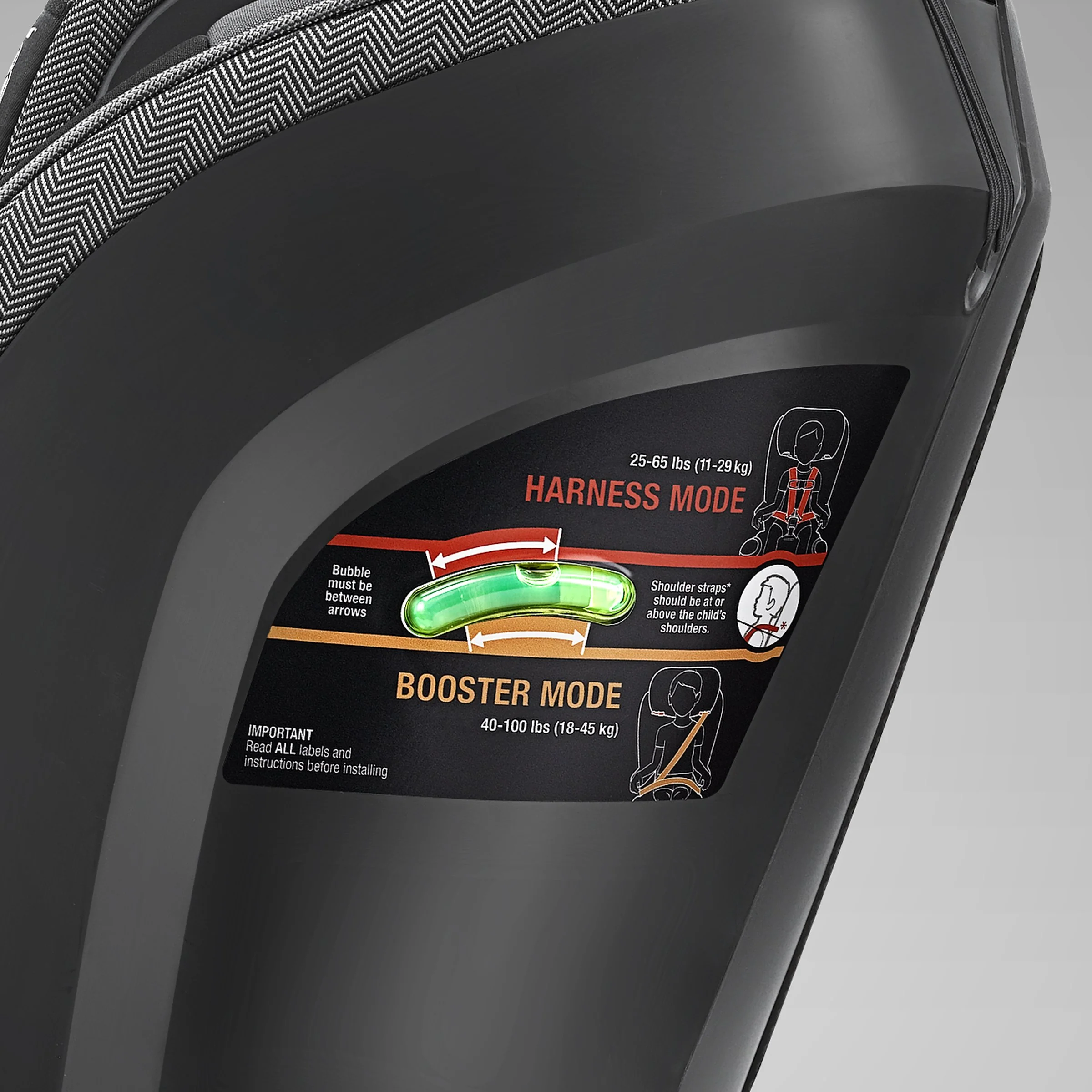 - EASY TO INSTALL — Premium LATCH connectors and LockSure belt-tightening system offer easy installation in either harness or seat belt mode while RideRight bubble levels and ReclineSure leveling system ensure a proper fit in the vehicle.