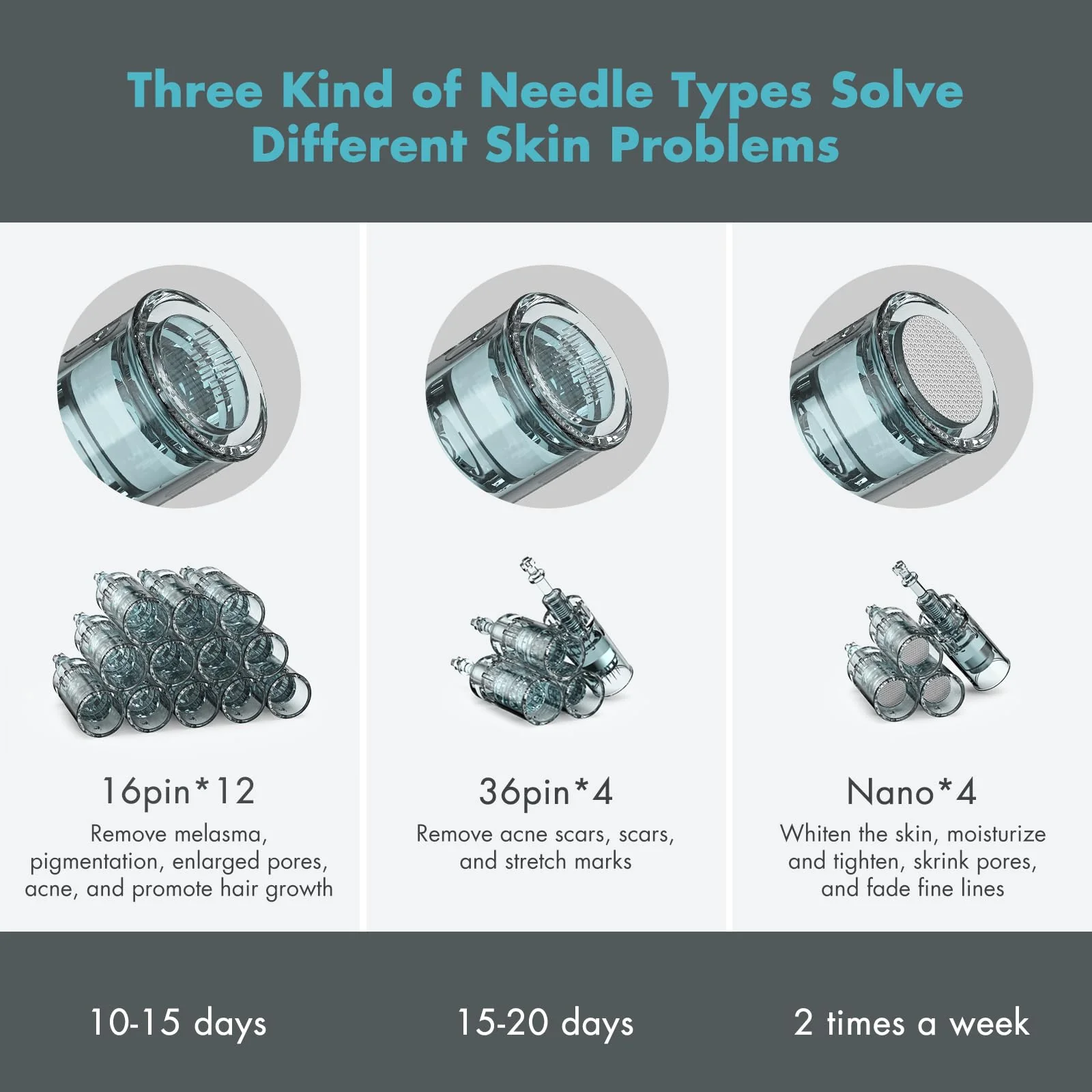 Three needle types address different skin concerns: