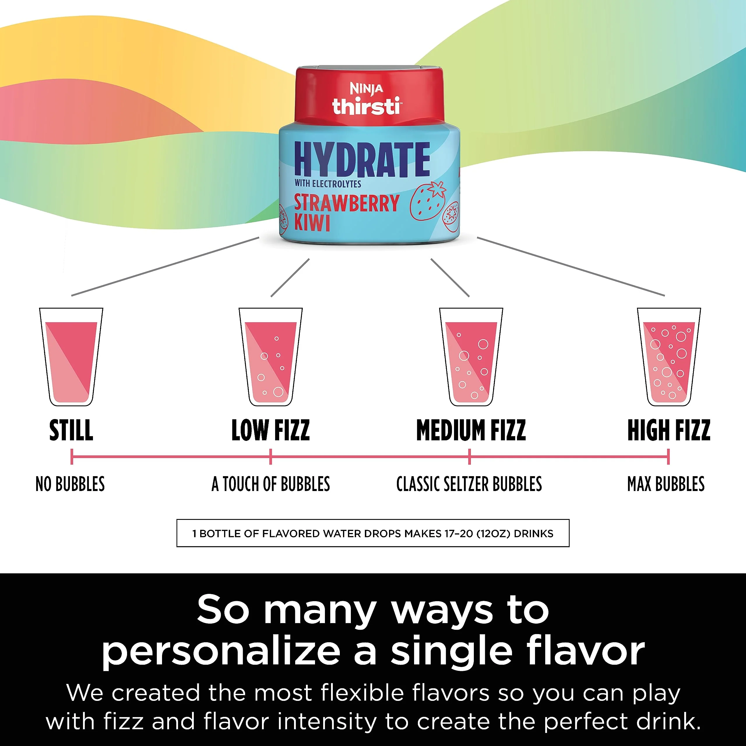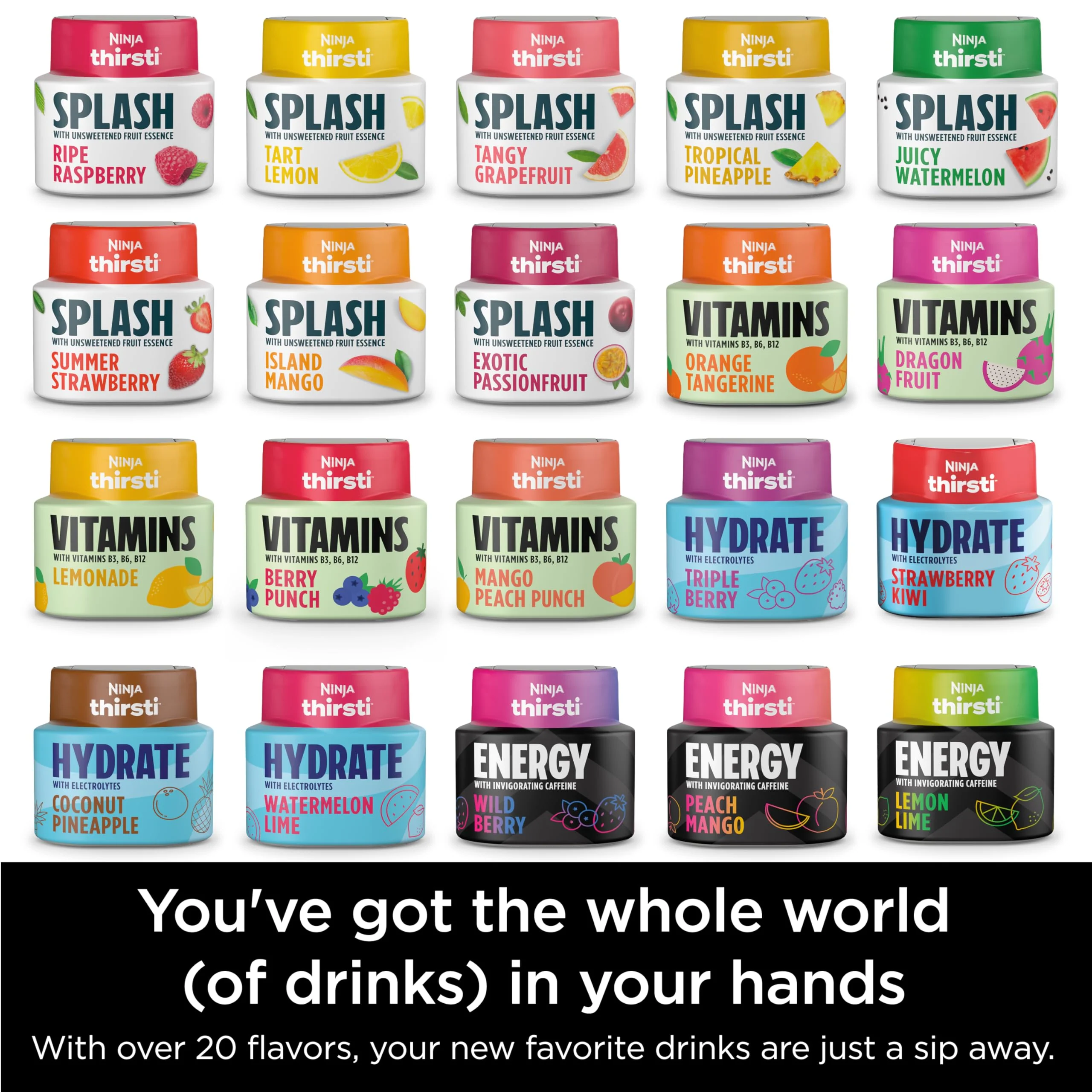- WHAT'S INCLUDED: Ninja Thirsti Station, 48oz Removeable Temperature Sensitive Water Reservoir, 60L CO2 Cylinder, Variety of Flavored Water Drops.