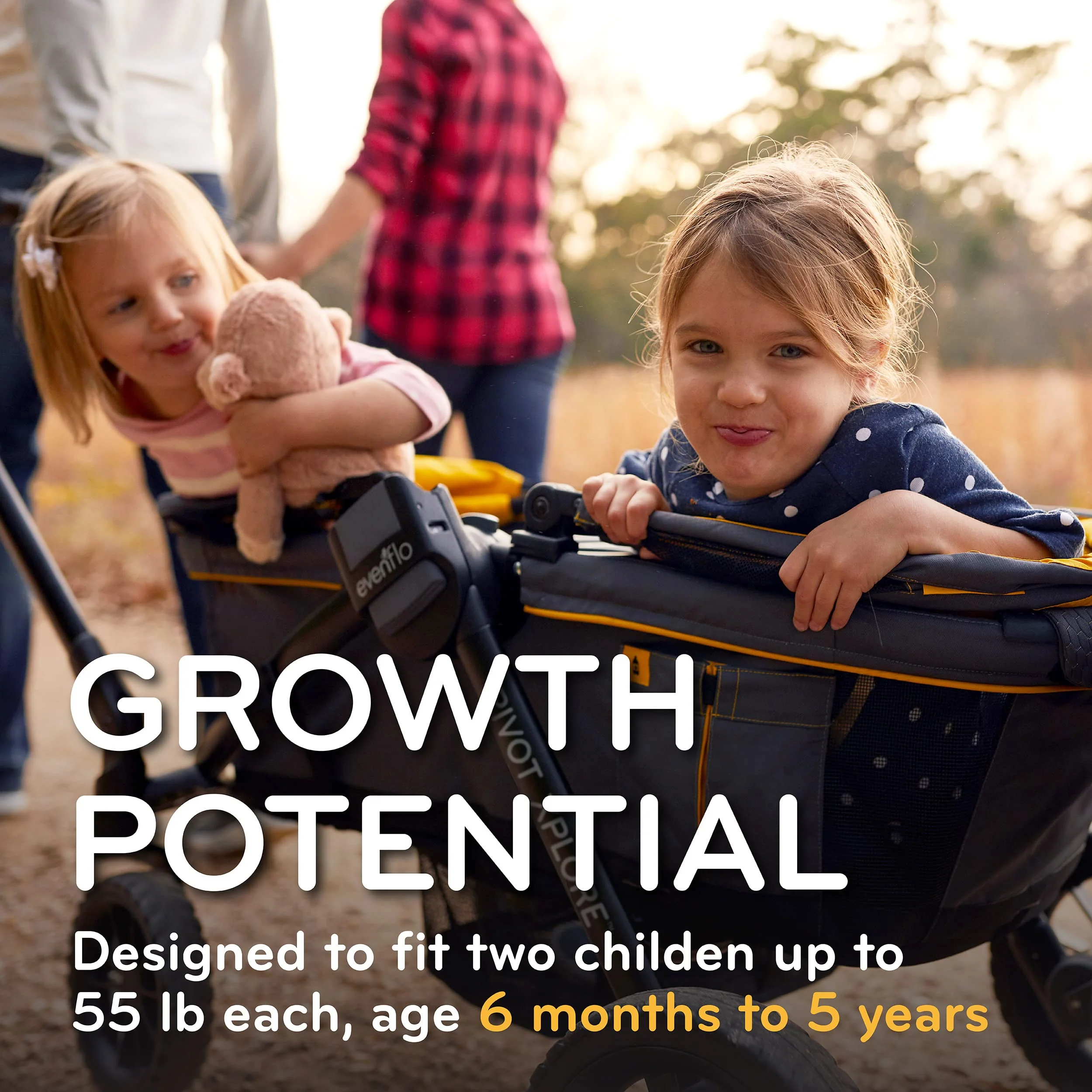• GROWTH POTENTIAL: Designed to fit two children ages 6 months to 5 years (each seat holds up to 55 lb) and is easily modified, by adding a toddler seat or car seat with adapter for flexible seating arrangements (all sold separately)