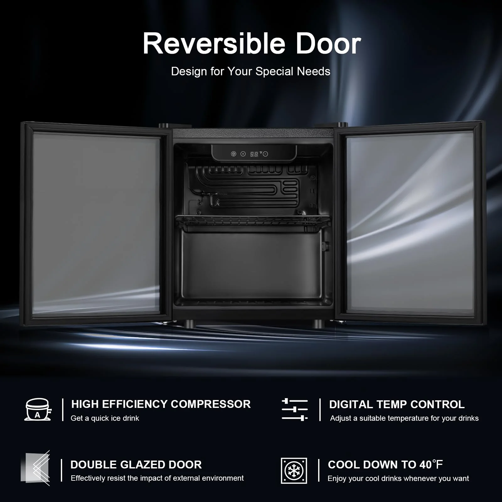 - COMPACT and SLIM: 16.46"D x 16.93"W x 18.5"H inches mini refrigerator can keep a variety of canned drinks or wine chilled without taking up too much space at your home, dorm, bar or office. It can conveniently hold 48 standard-sized drink cans,The interchangeable design of the left and right doors facilitates the selection of storage locations, adapts to the high-quality needs of different people and locations.