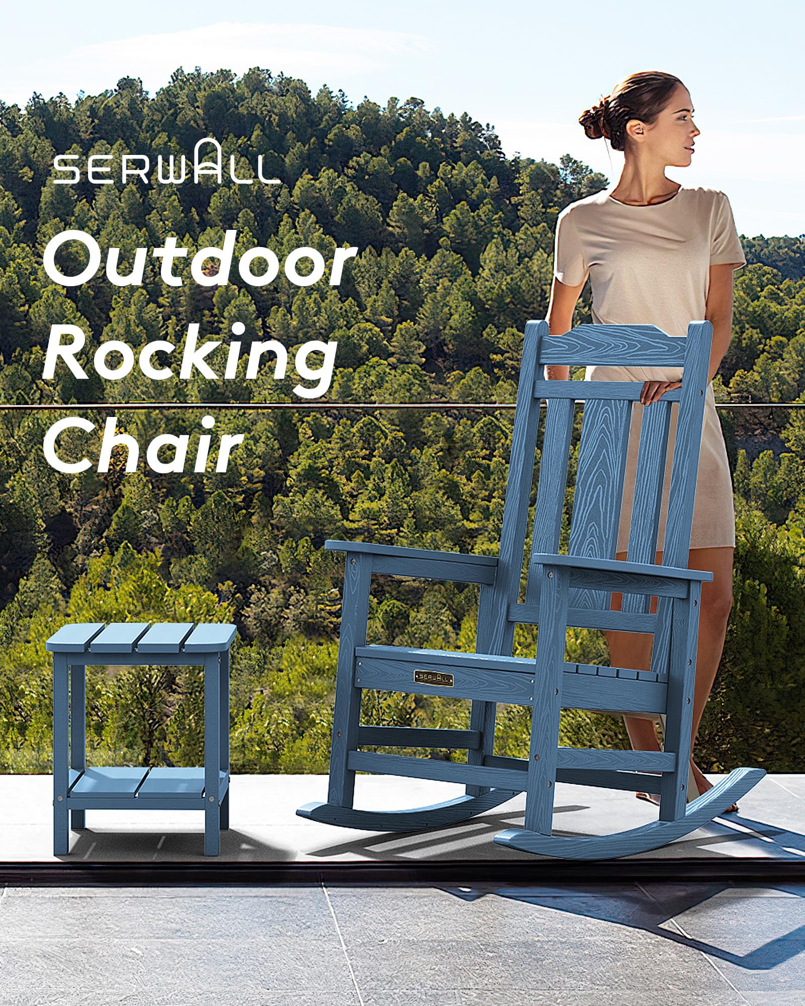 - 【Comfortable Rocking Chair】Comfort is our primary focus. SERWALL outdoor rocking chair is designed with an ergonomic shape, comfortable seating, and a supportive backrest to ensure a relaxing experience.