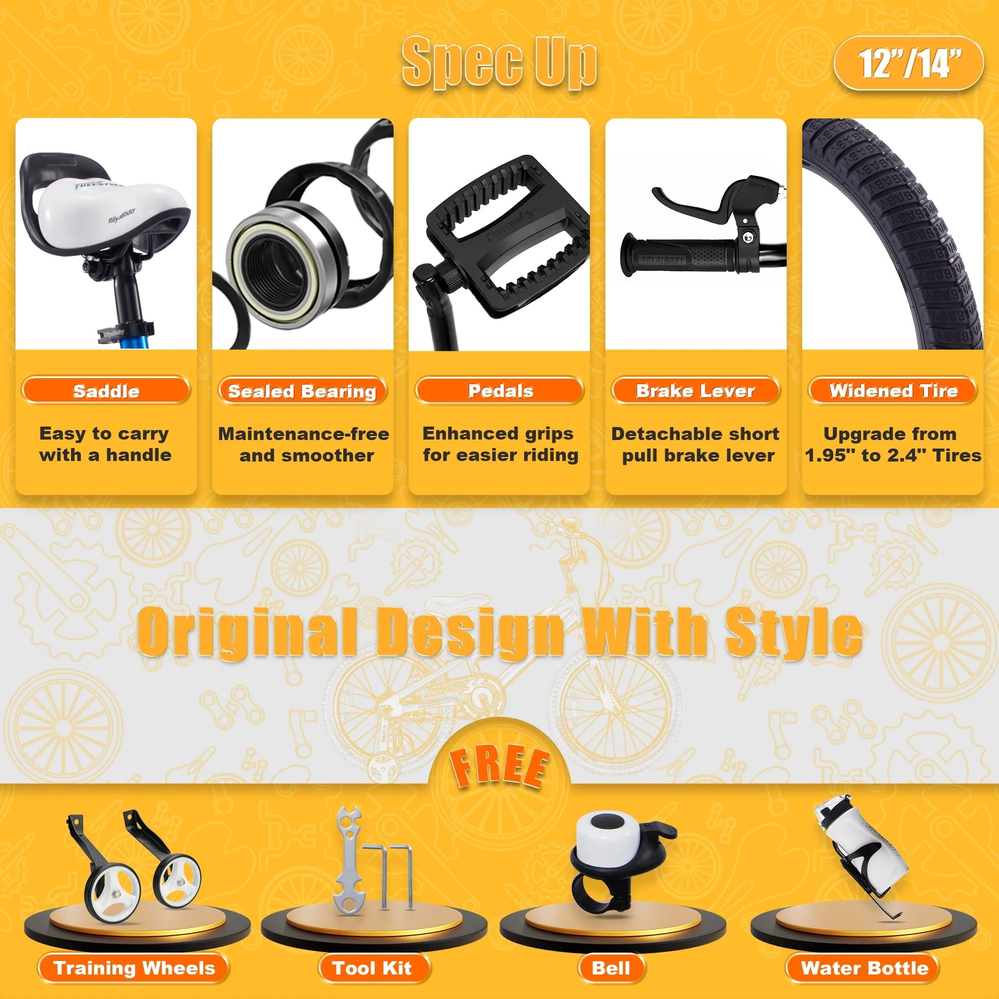 The RoyalBaby 12" FreeStyle was designed with inspiration from the BMX spirit; It's all about fun, creativity, freedom, and friends. With kids in mind, the Freestyle is a timeless design with RoyalBaby-specified kids' geometry components that is perfect for the next cycling star!